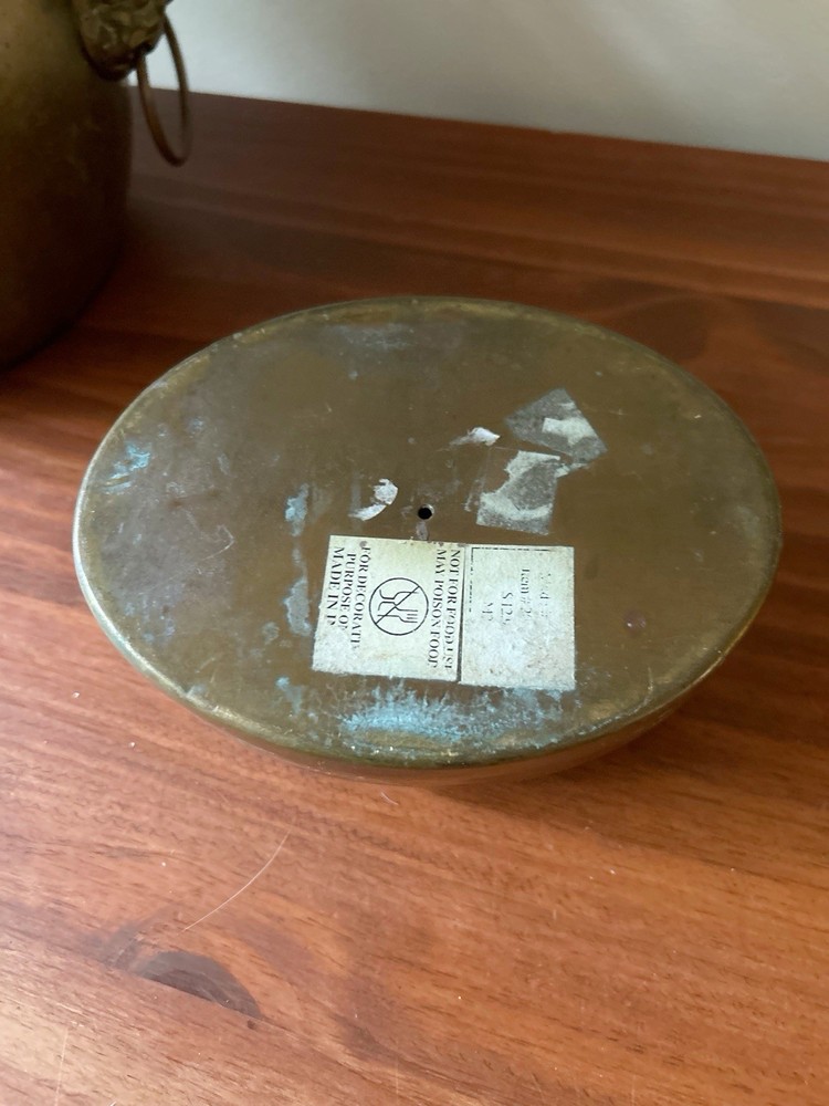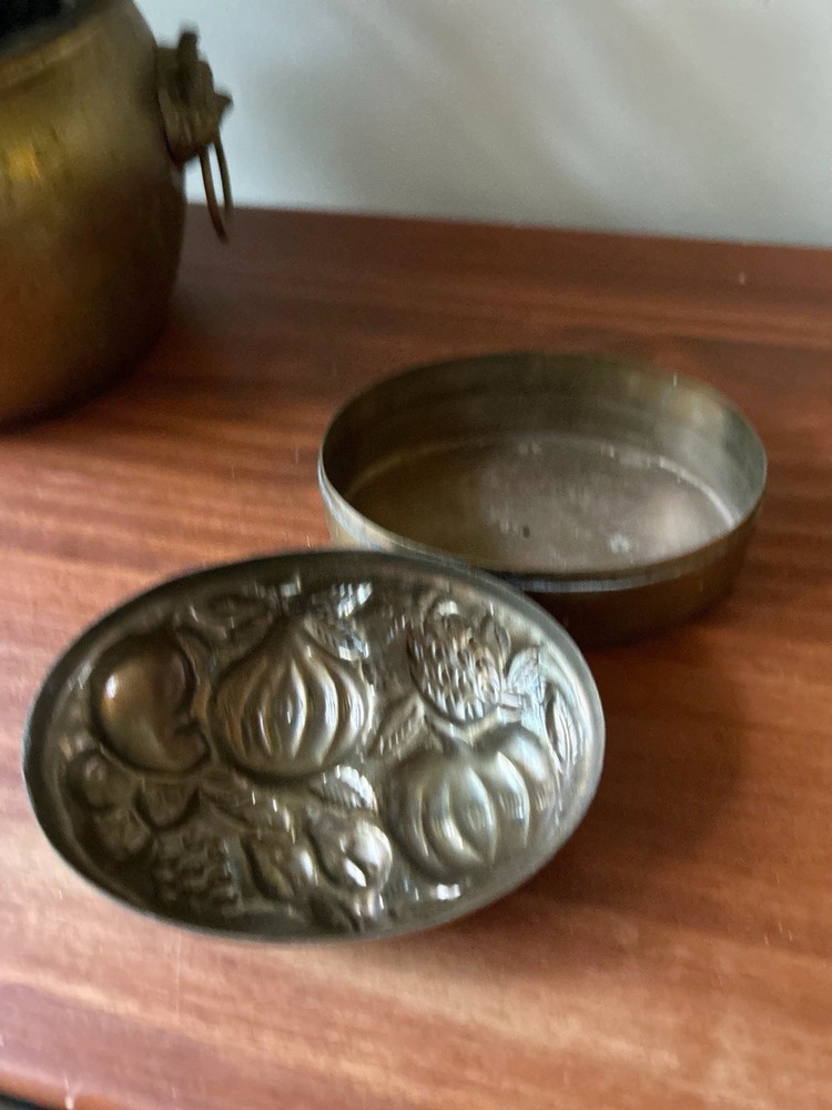 Customized: No Number in Pack: 1 Color: Gold Era: Late 20th Century (1970-1999) Suitable For: Furniture Shape: Oval Packaging: Box Original/Reproduction: Original Time Period Manufactured: 1970-1979 Material: Brass Finish: Embossed Engraved: No Features: With Lid Country/Region of Manufacture: India Type: Trinket Box Department: Adults Occasion: All Occasions Care Instructions: Clean with Damp Cloth Collection: Keepsake Boxes Room: Any Room