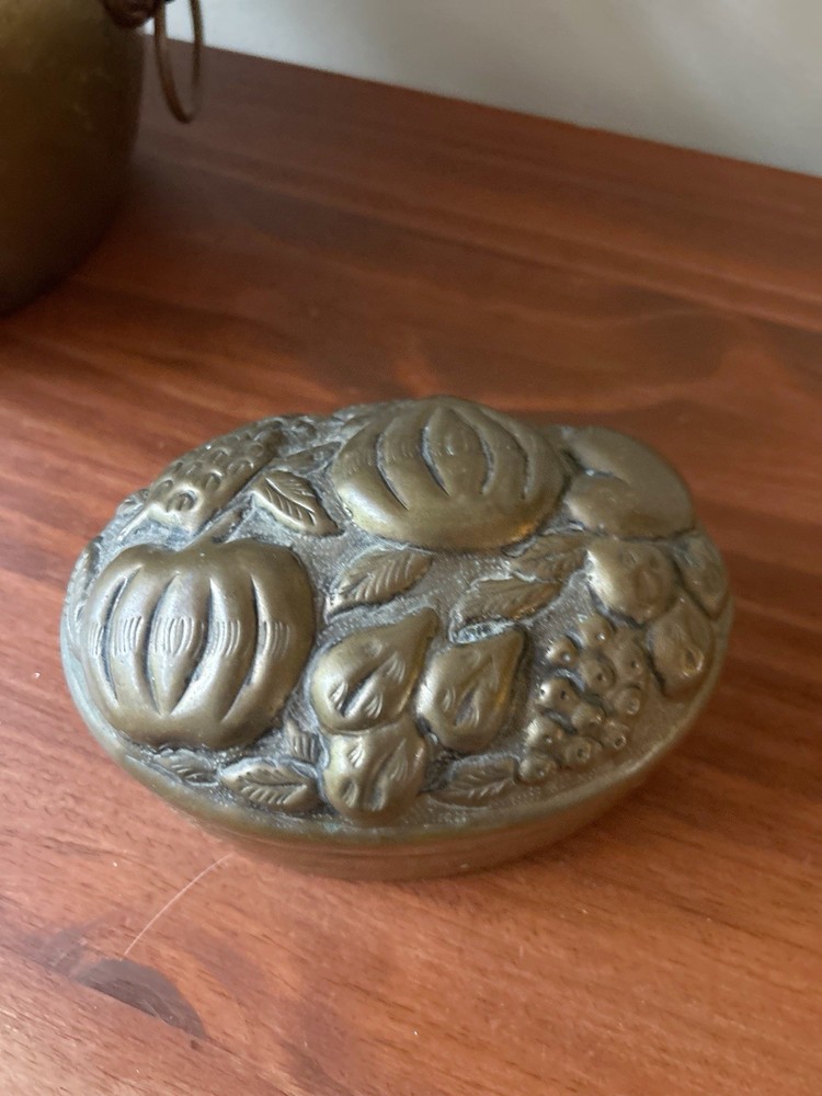 Vintage Brass Oval Fruit Embossed Trinket Box with Lid