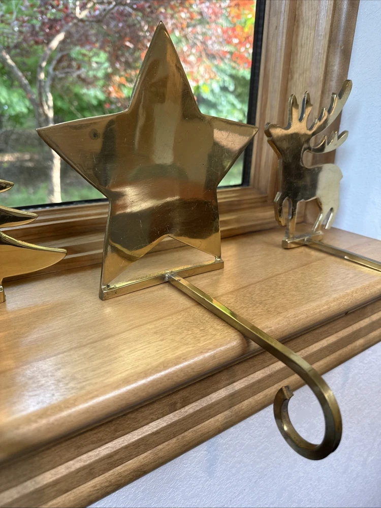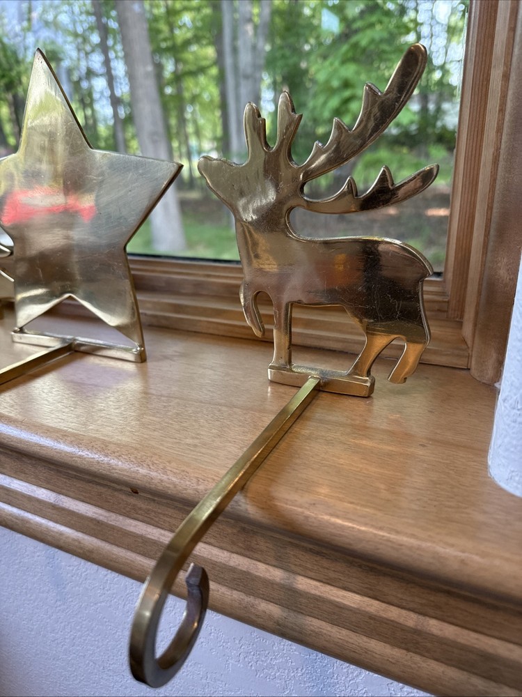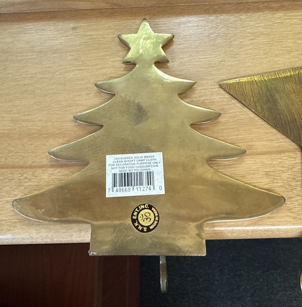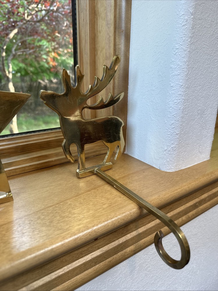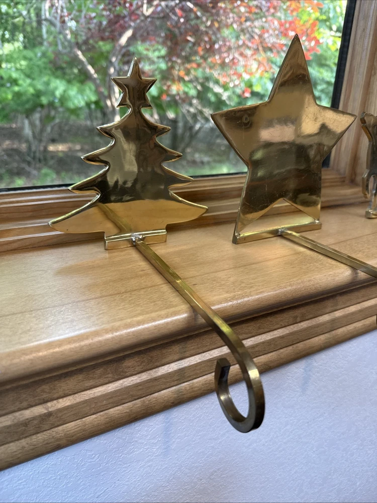 Material: Metal, Brass Brand: Unbranded Character: Tree, Reindeer, Star Department: Adults Pattern: Solid Personalize: No Shape: Custom Color: Gold Set Includes: Stocking Hanger Item Length: 8 in Country/Region of Manufacture: India Item Height: 6.5 In Size: Medium Theme: Holiday Number of Items: 1 Type: Stocking Hanger Seller Notes: “Great condition for their age!” Occasion: Christmas Features: Long hanging hook