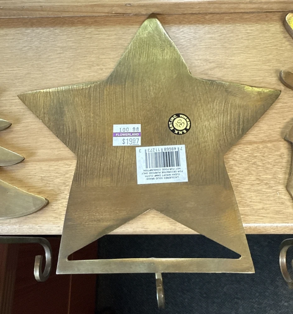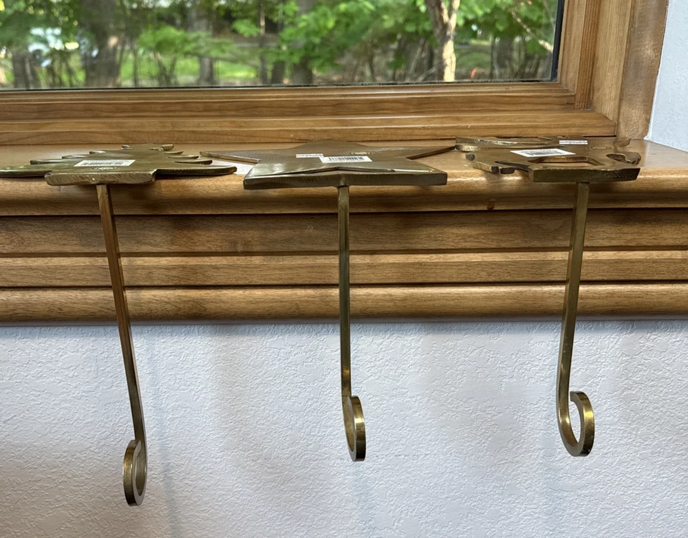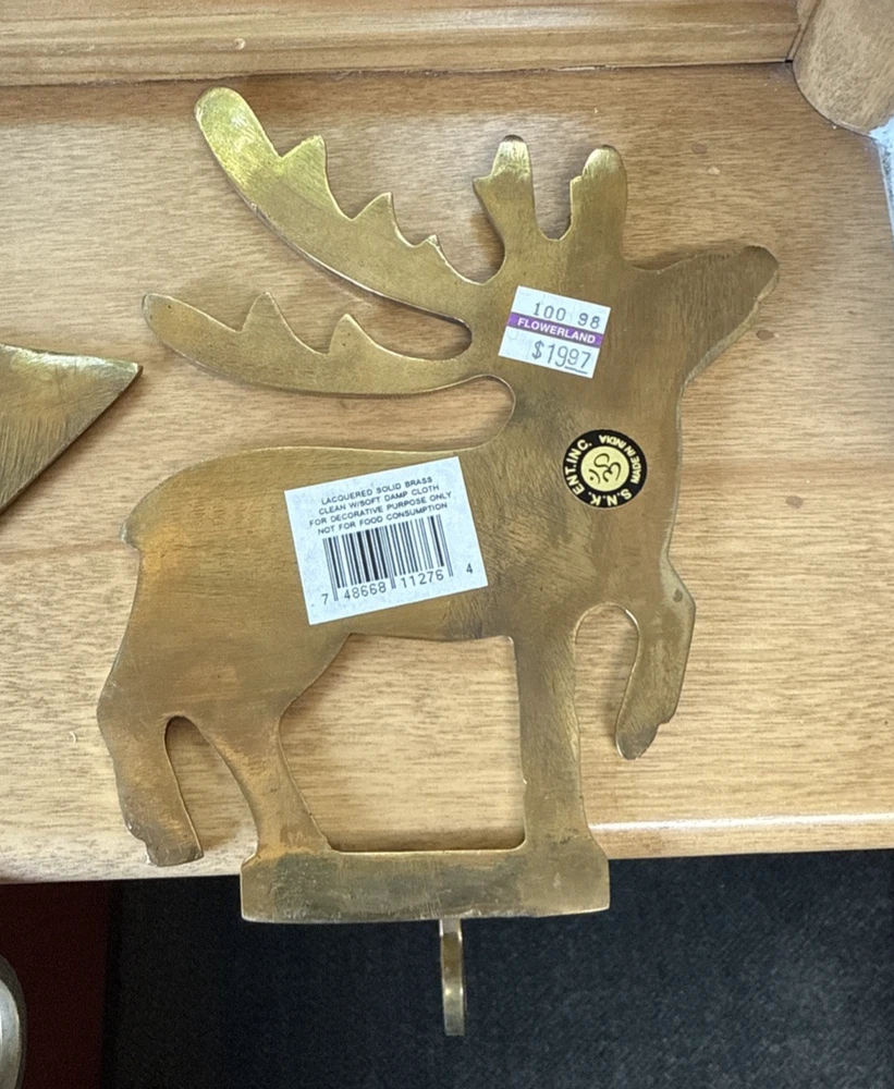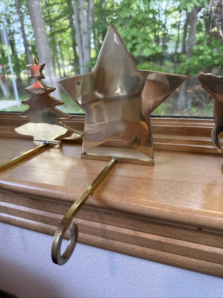 Material: Metal, Brass Brand: Unbranded Character: Tree, Reindeer, Star Department: Adults Pattern: Solid Personalize: No Shape: Custom Color: Gold Set Includes: Stocking Hanger Item Length: 8 in Country/Region of Manufacture: India Item Height: 6.5 In Size: Medium Theme: Holiday Number of Items: 1 Type: Stocking Hanger Seller Notes: “Great condition for their age!” Occasion: Christmas Features: Long hanging hook