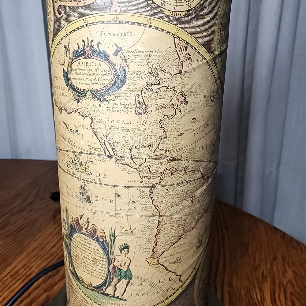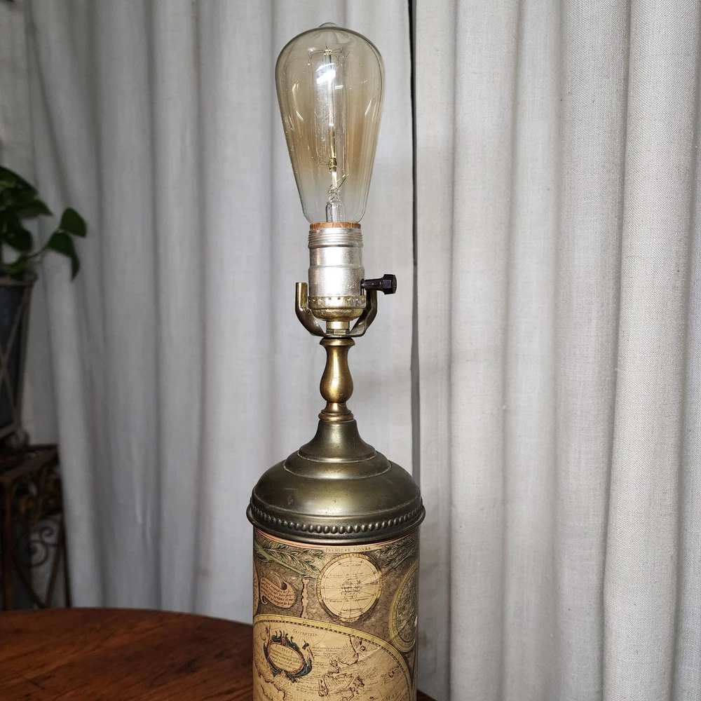 Vintage Brass Table Lamp Wrapped With Old World Map Paper Tested And Works
