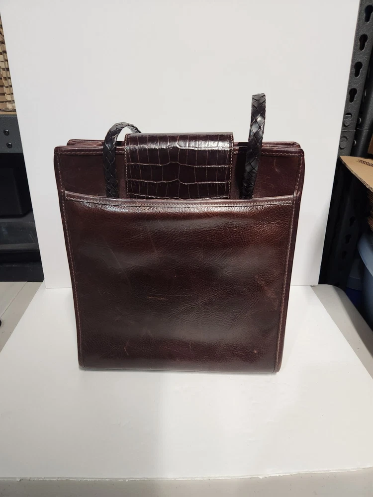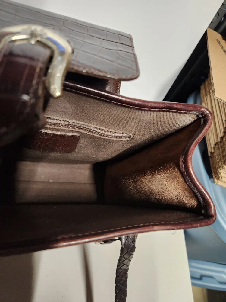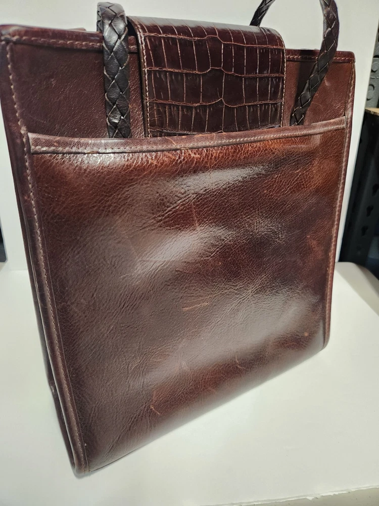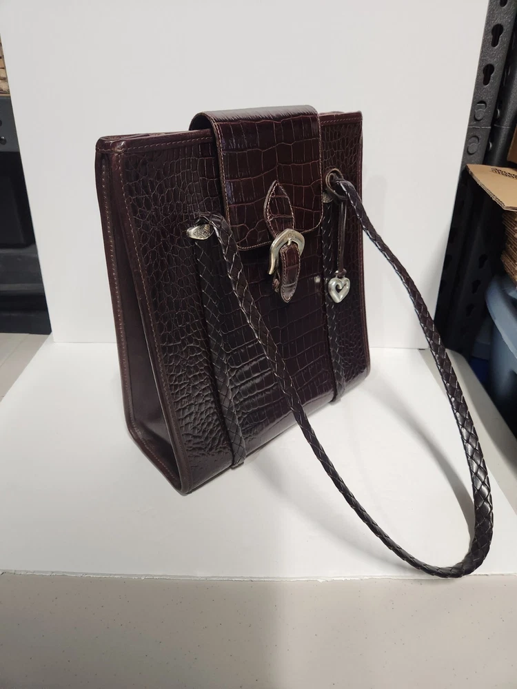 BRIGHTON Vintage No. 570207 BROWN Leather Croc Embossed Large Shoulder Handbag - Pre-owned, see pictures of condition - Shipping done using USPS Ground