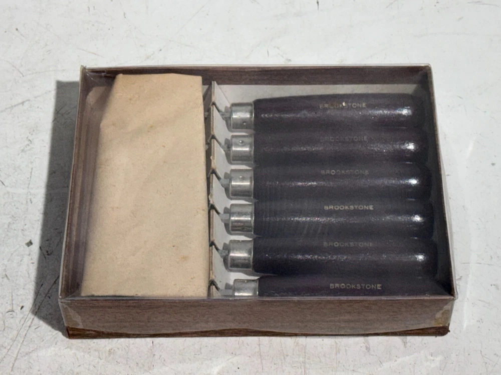 Hello, this listing is for a Vintage Set of 6 Brookstone Woodcarving Chisels. Good Condition. Free shipping within the USA. Please ask any questions first.
