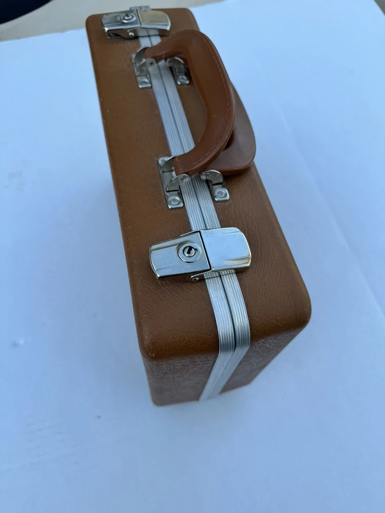 This vintage hard-shell case is a fantastic find! The faux-alligator leather gives it a classic, rugged look while the sturdy metal hinges and latches ensure durability. The egg-crate foam lining keeps your revolver or valuables snug and protected. Perfect for collectors or anyone who appreciates retro-style storage. Love the rich brown color—great condition for its age! Just be aware it doesn’t come with a key, but that’s a minor trade-off for such a cool piece. Highly recommend!