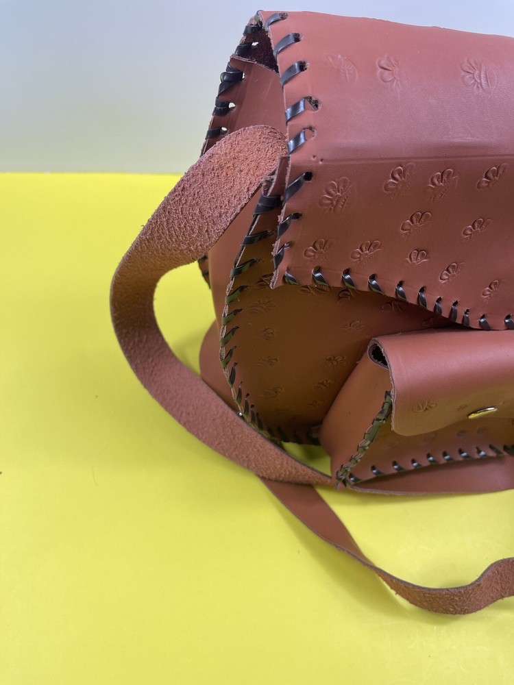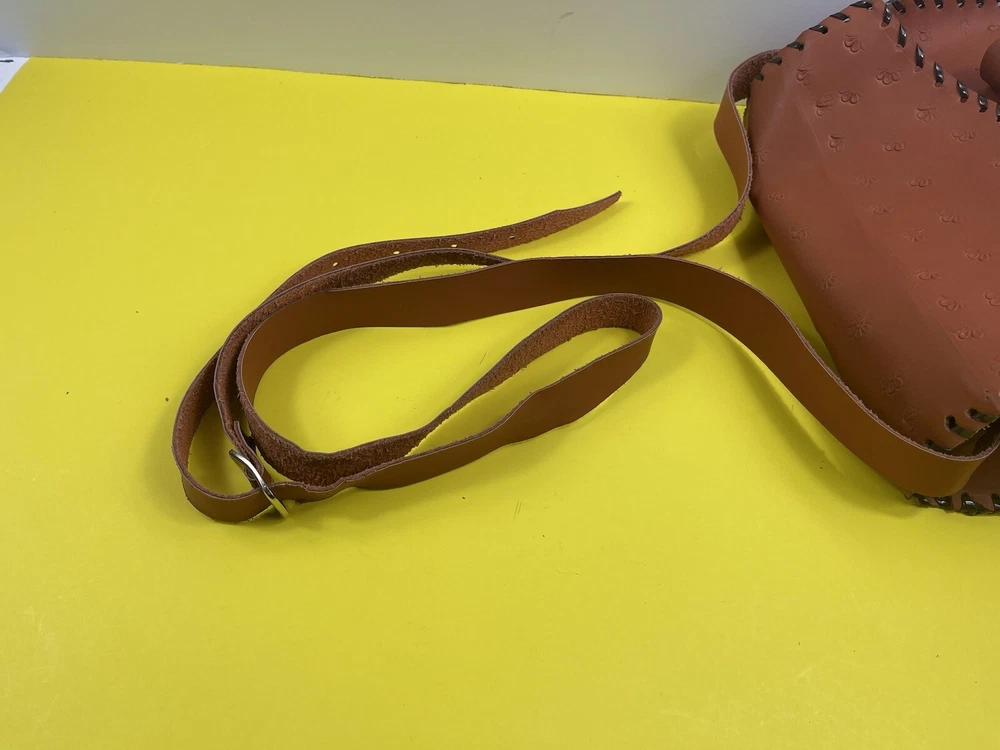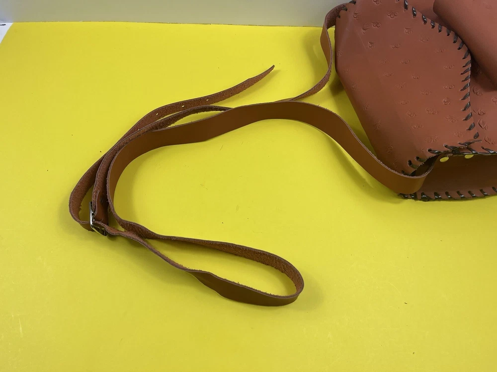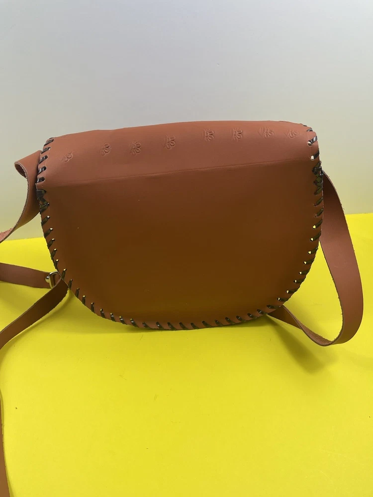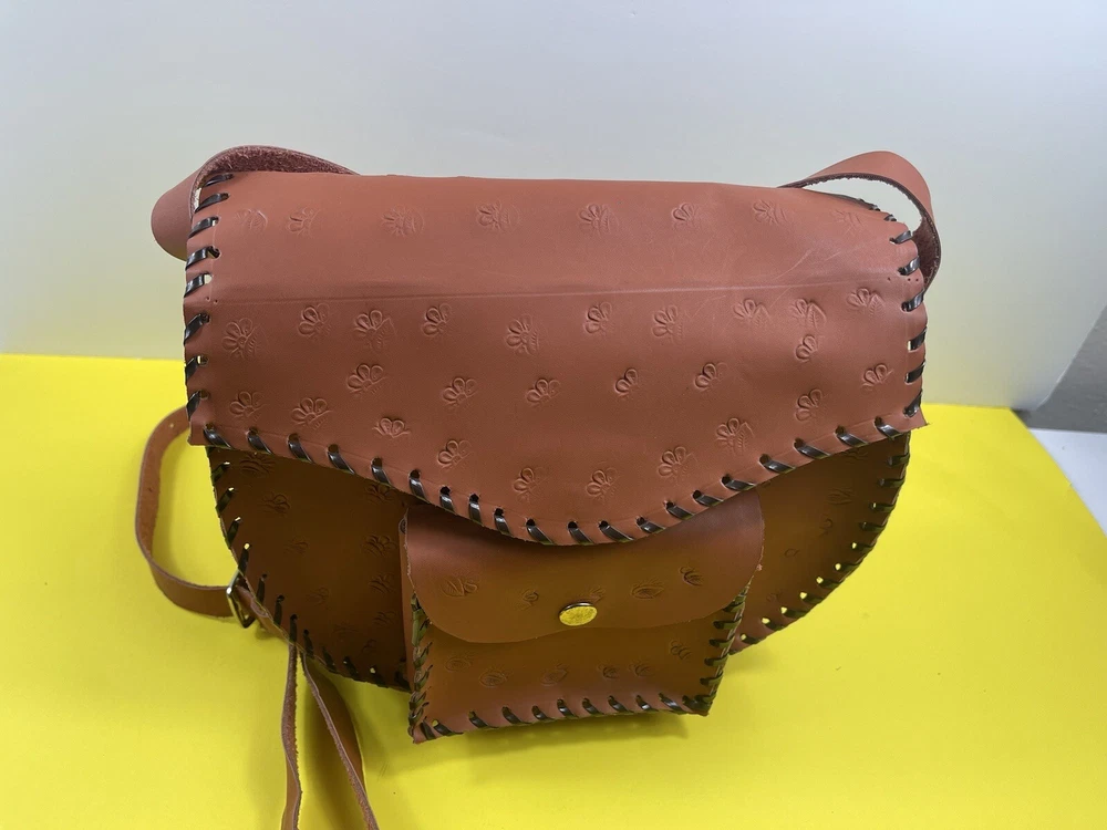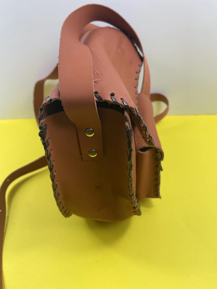 This lovely vintage brown leather shoulder bag is the perfect addition to any woman's collection. The classic design features gold hardware and a snap closure, with an adjustable crossbody strap for comfortable wear. Measuring 8 inches in height, this medium-sized bag is perfect for casual occasions. The exterior leather material is accented with a strap accent, adding a touch of style to the solid pattern and rectangle shape. The beige lining complements the brown exterior color, making this bag a timeless choice.