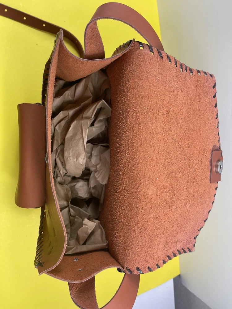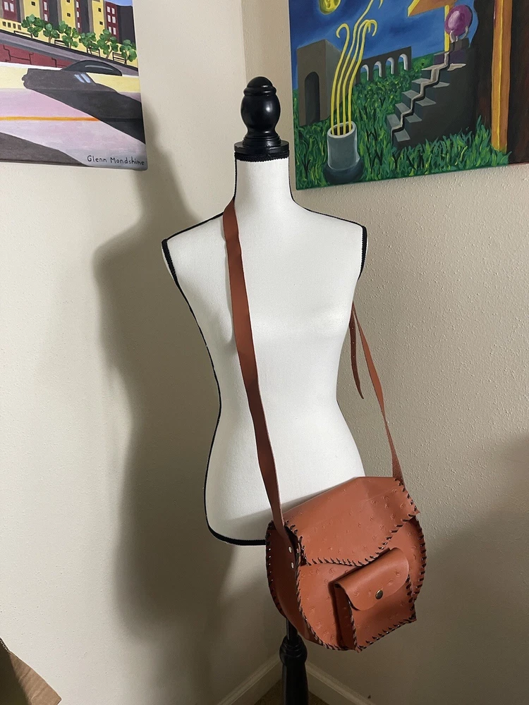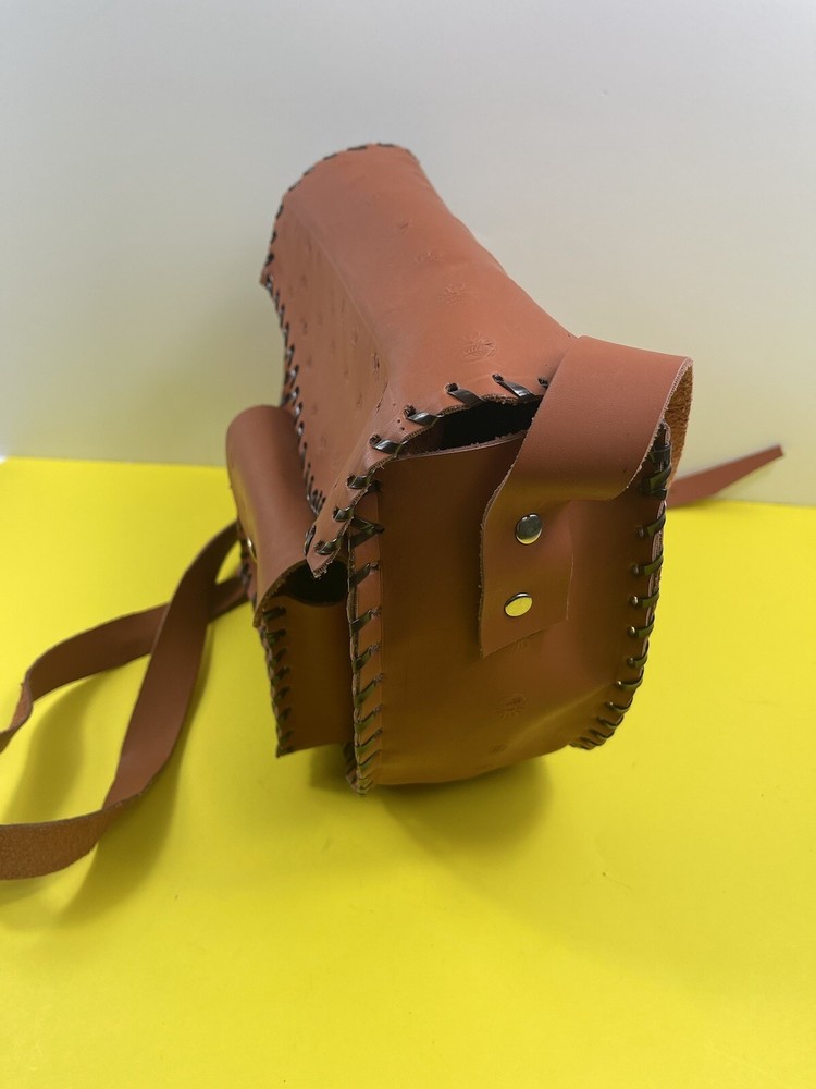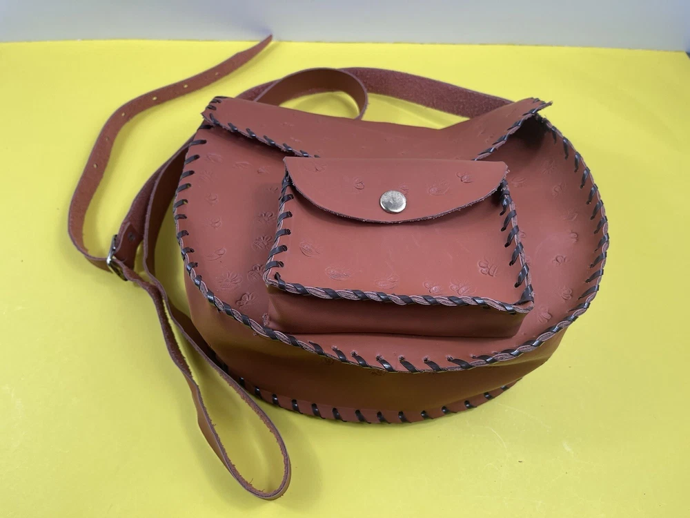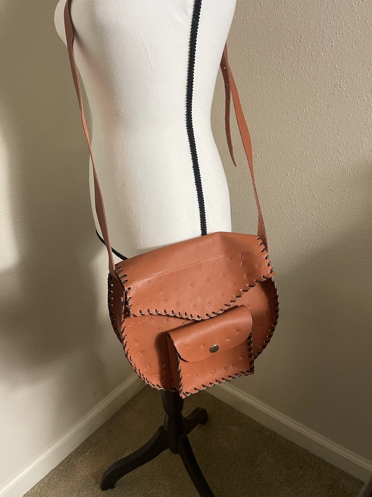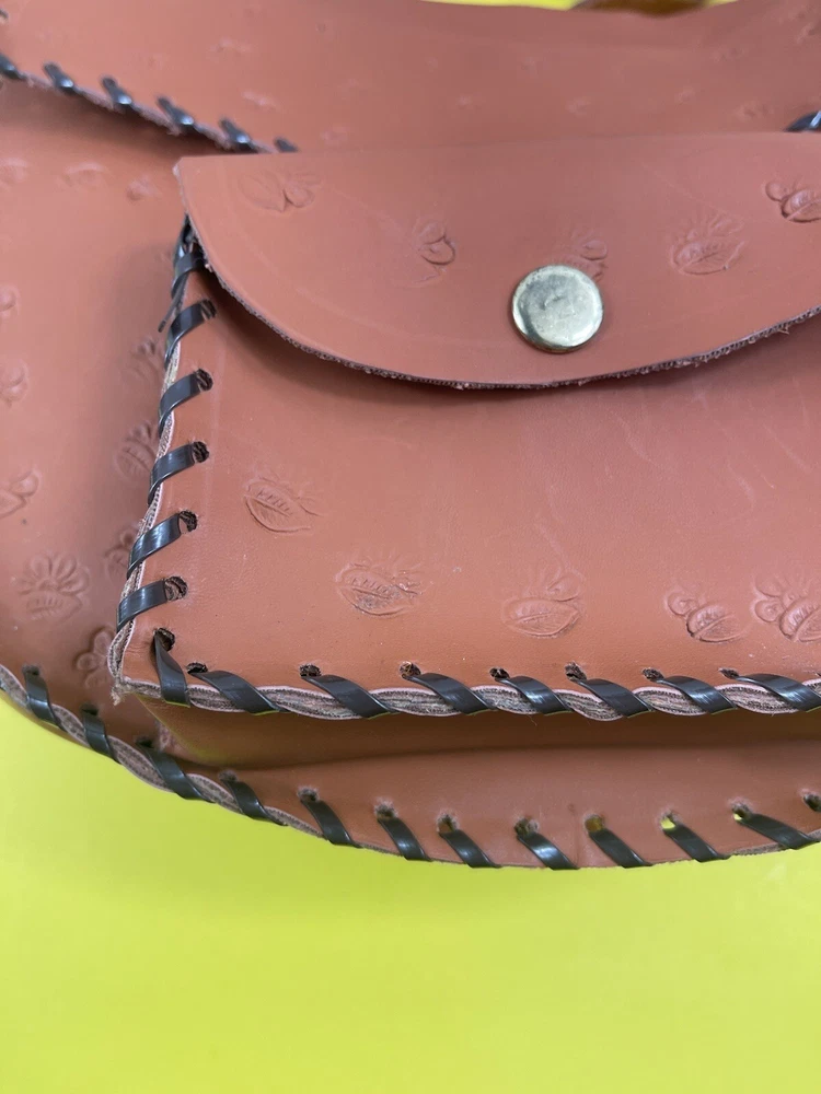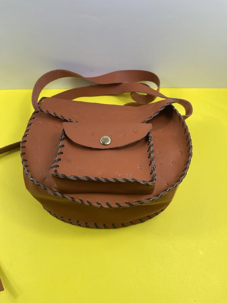 This lovely vintage brown leather shoulder bag is the perfect addition to any woman's collection. The classic design features gold hardware and a snap closure, with an adjustable crossbody strap for comfortable wear. Measuring 8 inches in height, this medium-sized bag is perfect for casual occasions. The exterior leather material is accented with a strap accent, adding a touch of style to the solid pattern and rectangle shape. The beige lining complements the brown exterior color, making this bag a timeless choice.