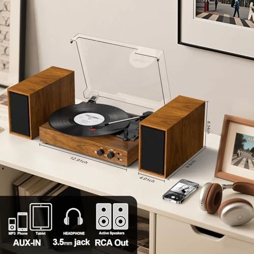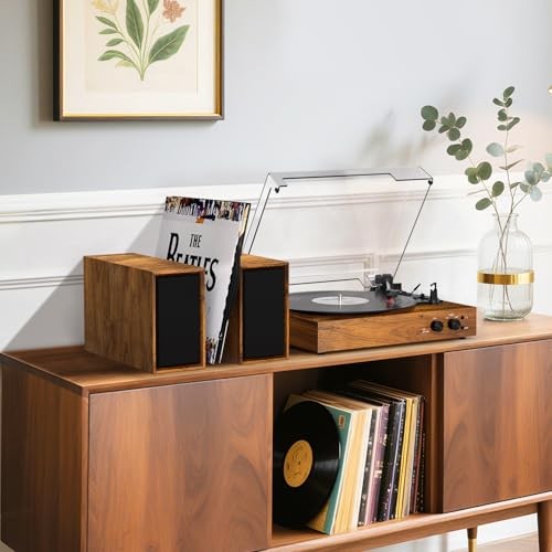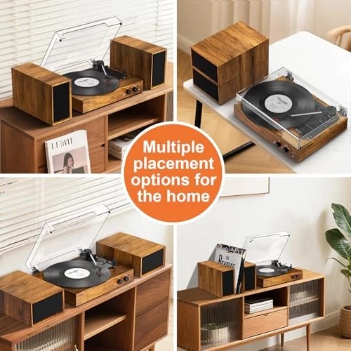 Return Policy Fast Delivery Trusted seller Vinyl Record Player with External Stereo Speakers, Vintage Bluetooth 3-Speed Turntable with Dual Stackable Speakers, PC Recording Vinyl to Digitia, RCA-Out& AUX-in, Retro Wood Product Description 【DUAL POWERFUL EXTERNAL SPEAKERS】Equipped with complete matching set of separable speakers, the record player is a classic yet modern all-in-one system, let you enjoy full and dynamic vinyl audio sound. Supports RCA output connection to your own externally-powered speakers. 【3-SPEED BELT-DRIVEN TURNTABLE】The vinyl record player equipped with dust cover, slip-mat, 45 RPM-adapter, and built-in auto-stop function, 3- speed turntable supports all vinyl records including 7", 10"& 12" with switchable 33⅓ 45, 78 RPM speed settings. Protective auto-stop function enables to stop automatically when a record ends. 【PC RECORDING VINYL INTO DIGITAL】Effortlessly digitize your vinyl collection with MP3 recording capabilities via PC encoding(USB-PC cable included). Preserve the warmth of your records while making them portable and ready for modern devices, all with a simple plug-and-play setup. 【WIRELESS MUSIC STREAMING INPUT 】Built-in with Bluetooth receiver, stream your favorite music wirelessly to the turntable from your phone or other Bluetooth device. Through the fast Bluetooth pairing and connection with the turntable, you can enjoy the premium sound from the dual external speakers. 【VINTAGE LOOKING DESIGN】Turntable with speakers is simplistic yet elegant, it features a vintage aesthetic, adding a touch of retro vibe to any room. Two bookshelf speakers not only works as capable music station but offers multiple placement options as turntable base or record shelf. Shipping Returns Payment Shipping Shipping is FREE to all addresses other than APO/PO boxes in the lower 48 states. All our stock ships from US-based warehouses. Shipped via USPS or UPS (depending on location and package weight) Unless stated otherwise, all orders will ship within 24-72 hours of your payment being processed. Check our feedback to see the great reviews of FAST shipping we offer. Returns Seller does not accept returns Payment We currently accept payment via eBay managed payments only. Once payment is cleared, we will dispatch your shipment within 1-3 business days. Please refer to the "Shipping" tab for more information regarding shipping speed to your destination.