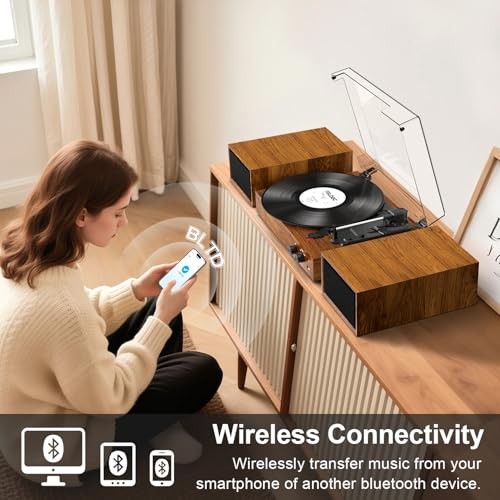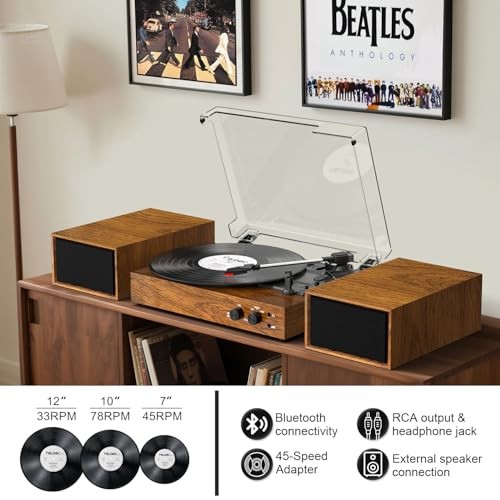 Record Player Vintage 3-Speed Bluetooth Vinyl Turntable with Stereo Speaker,