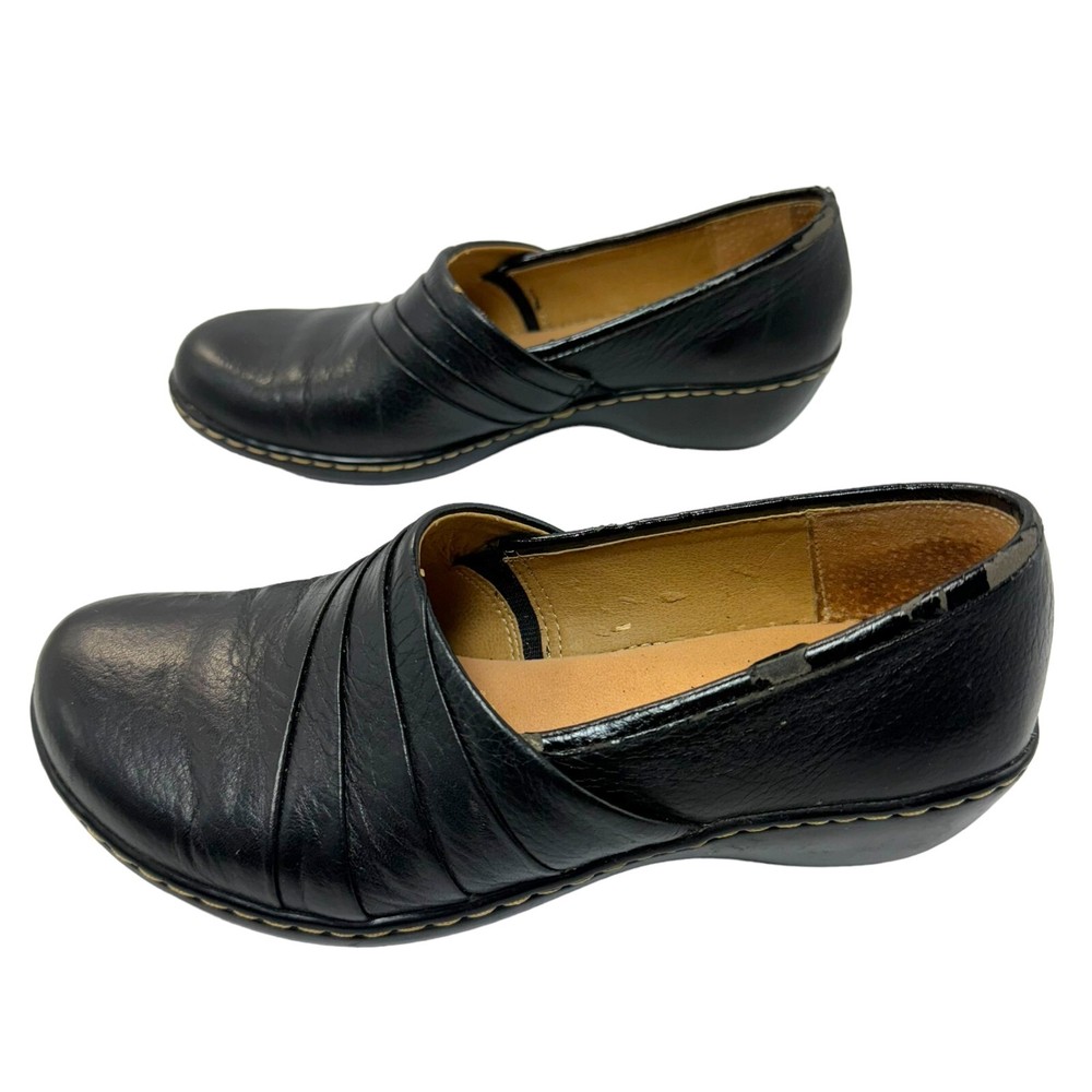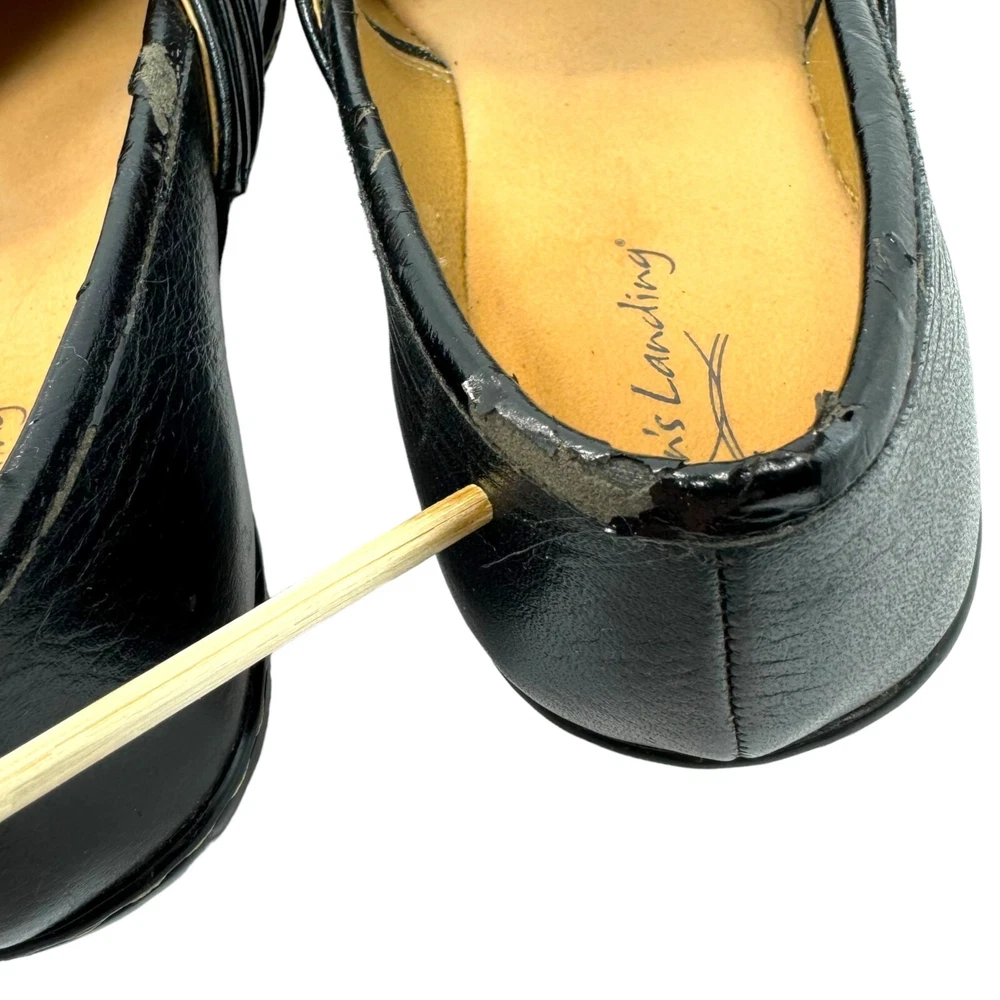 Item For Sale: Vintage Brown's Landing Maria Leather Clog Style Slip On Loafers Size 6.5M Black leather upper, man made sole 2" wedge heel Pleated accents Contrast topstitching Slip on style Style #: FL312-25 Item Condition: Good preowned condition. There is some flaking on the rim of the leather, shown in detail in the last 2 pictures. Structurally, these shoes are in very good condition, and there are no other flaws. Shipping Information: Purchases are shipped the next business day after full payment is received, and on occasion an item purchased early in the day may end up shipping out that same day. The shipping service used will depend on the specific weight and dimensions of the item, but the most commonly utilized services are USPS First Class, USPS Ground Advantage, or USPS Priority Mail. If this is a book purchase, USPS Media Mail is used. Free returns are accepted for any reason within 60 days of purchase. The return shipping is free to the buyer. Once the returned item has been received, you'll be issued a refund for the original item cost (not including the original shipping cost). Store Information: Thank you for supporting my small business! Providing affordable, quality products and top-notch customer service is my top priority. If you have any concerns about an item you receive, please don't hesitate to reach out. I'm always happy to address any concern you may have.