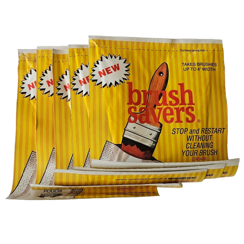 The box is still intact but is has some bent and ripped edges/flaps. Brush savers are fully sealed and have never been opened. Make your painting and home improvement projects easy with this set of 5 Vintage Brush Savers Paint Brush Solution pouches from Lynted Corporation. These nontoxic and odorless pouches are perfect for keeping your paint brushes in good condition without worrying about any harmful chemicals. The brush savers are ideal for all types of painting projects and and allow you to stop and restart without cleaning your brushes. Please review the photos for additional details, and as always, feel free to reach out with any questions. Thank you for viewing this listing.