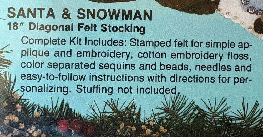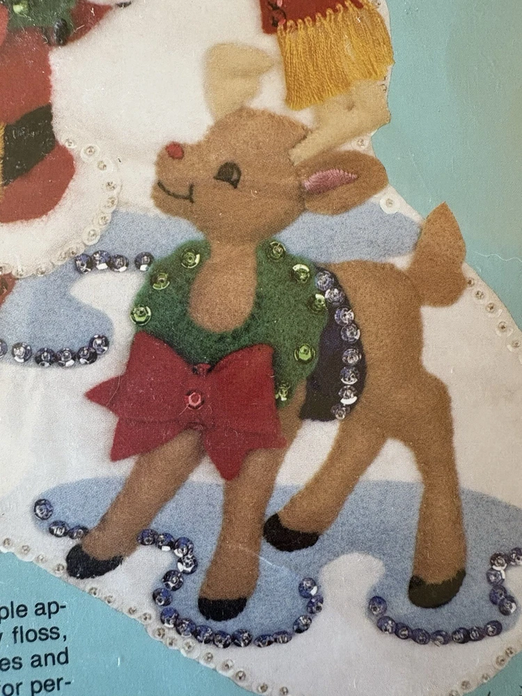 Vintage Bucilla 82904 Christmas Felt Stocking Kit Santa Reindeer Snowman 90s NEW To upcycle, I reuse shipping material as often as possible. Buy more from my store and save on shipping.