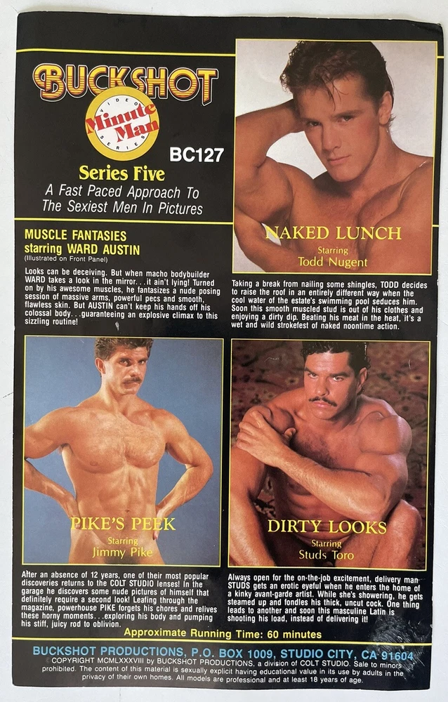 Vintage Buckshot Gay Video Flyer Colt Studio Minute Man Series 1988 5.5x9
