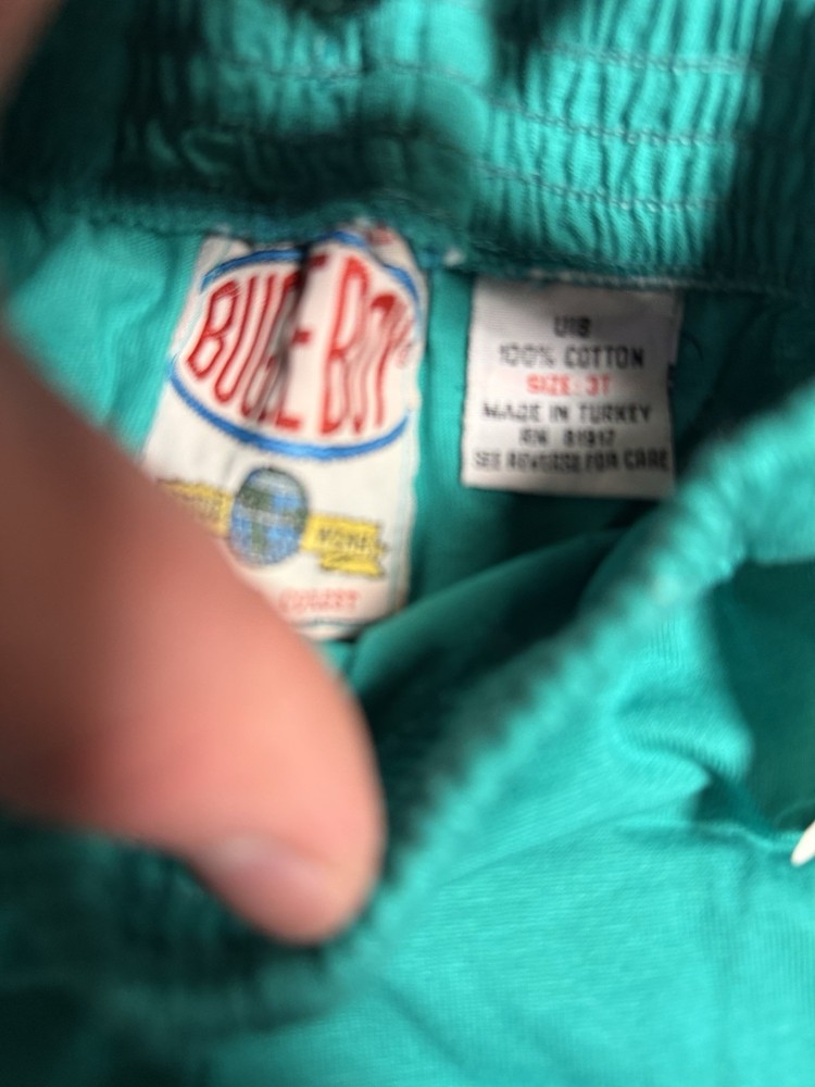 This Vintage Bugle Boy Short Sleeve Set in green is a classic fit shirt for boys in size 3T. Made of a cotton blend material, this collared shirt features a sailor collar style and is suitable for all seasons. With a vintage touch and a hint of retro style, this casual shirt is perfect for everyday wear or even for a baseball activity. The Bugle Boy brand adds a nostalgic element to this basic yet stylish top for young boys.