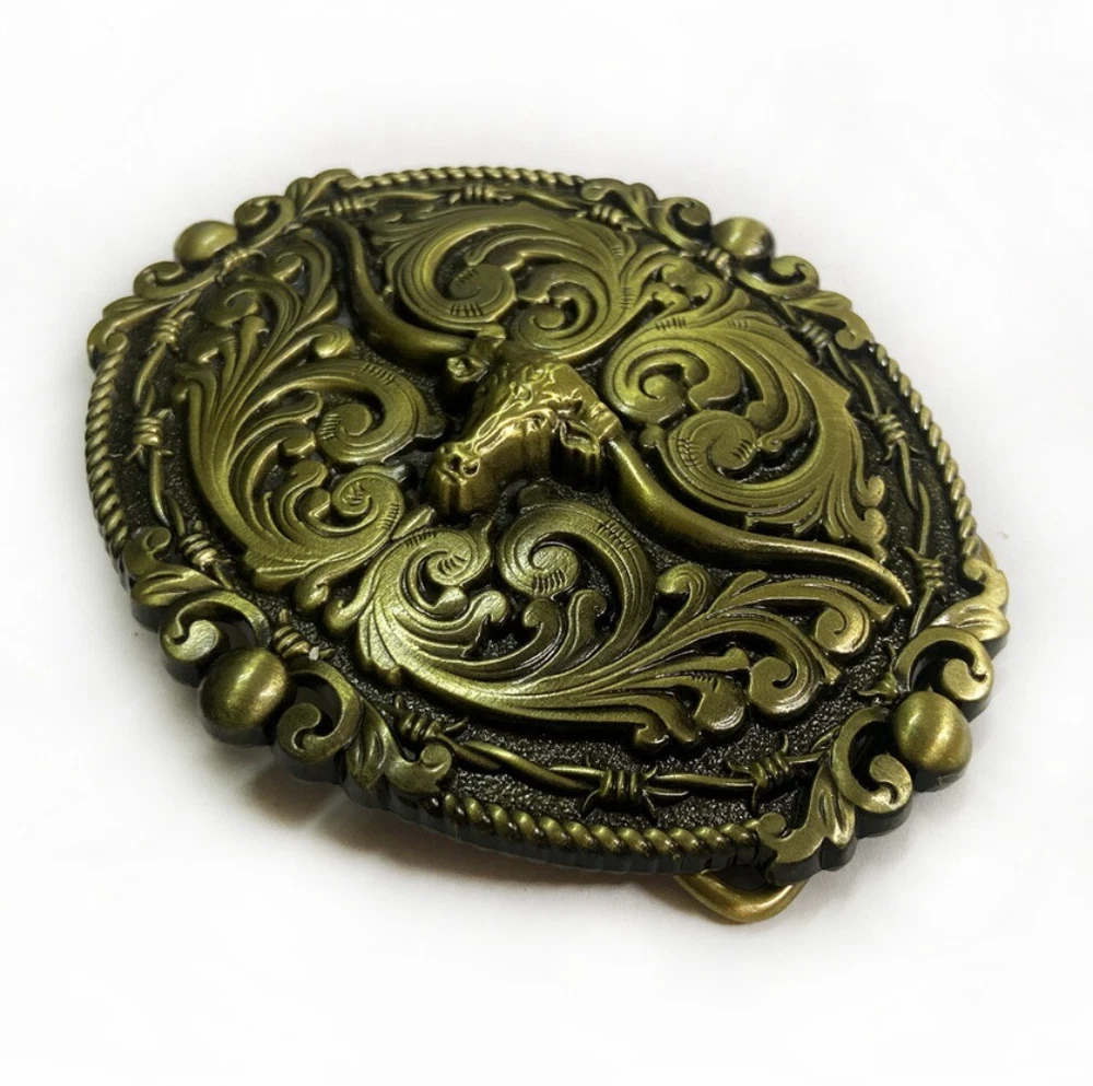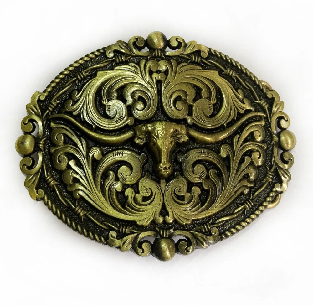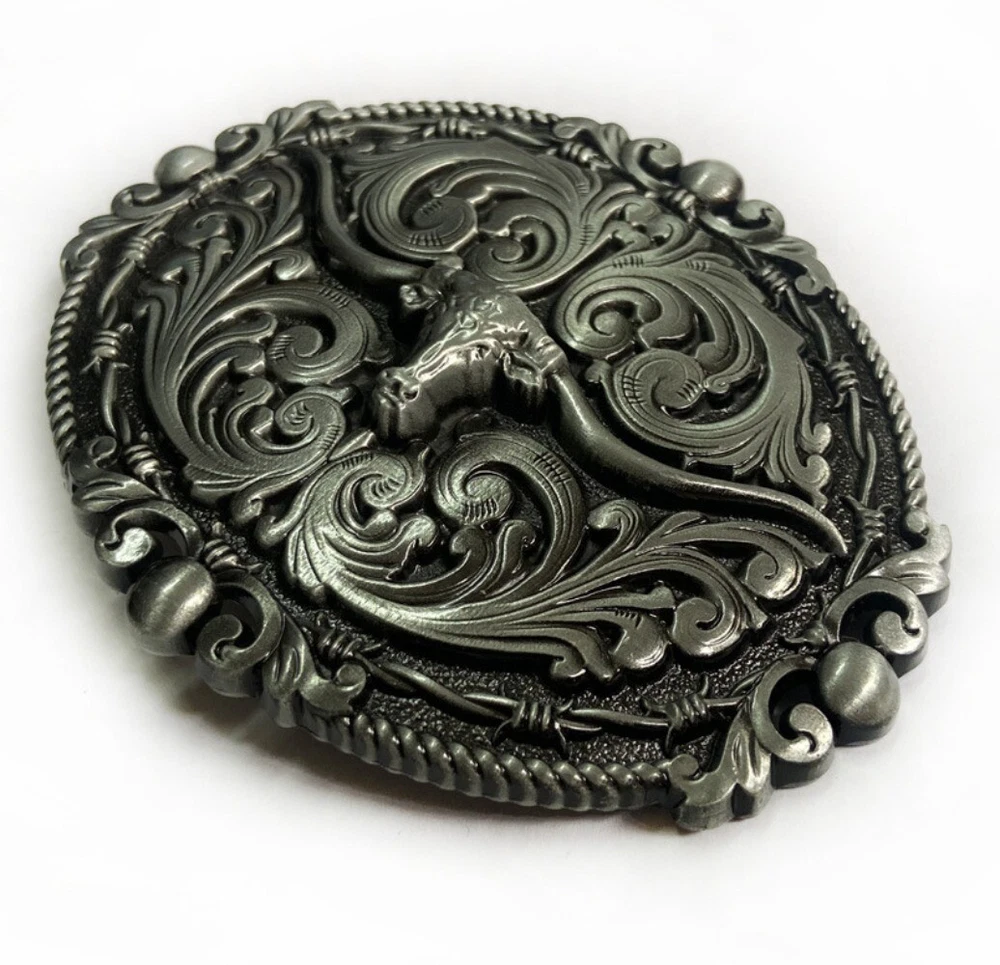 Vintage Bull Floral Pattern Western Cowboy Belt Buckles Men & Women Rodeo Wear