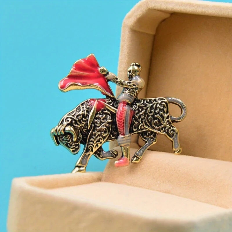 This fun and quirky bullfight brooch is a fantastic addition to any collection! The vintage design has great detail, and the enamel gives it a bold pop of color. Lightweight yet sturdy, it stays securely pinned. Shipping was fast, and the seller’s return policy is reassuring. Perfect as a unique gift or to add personality to jackets and bags—love it!