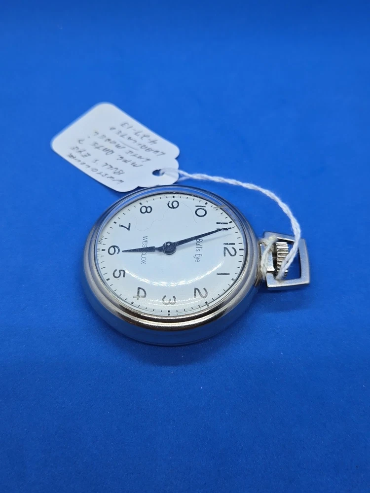 Absolutely love this vintage Bull's Eye pocket watch! The classic silver case and bold white dial with large numerals make it easy to read. Though there's a small crack in the crystal and the back doesn’t snap fully, it keeps perfect time. The mechanical movement feels authentic, and the retro charm is unmatched. A fantastic piece for collectors or anyone who appreciates timeless style. Works like a dream!