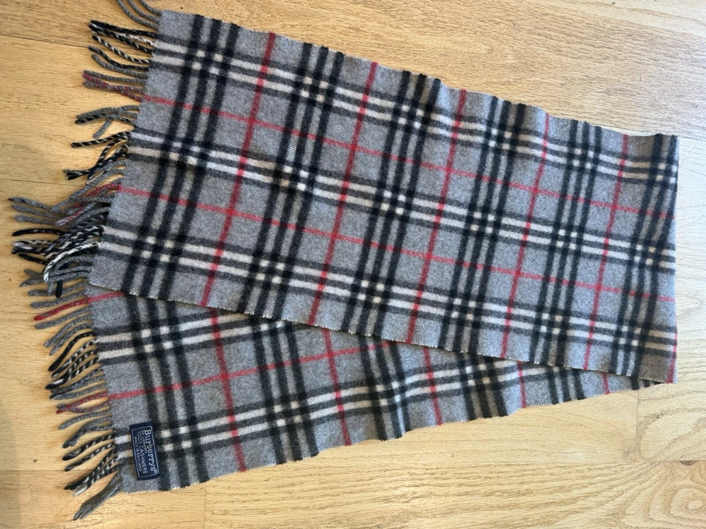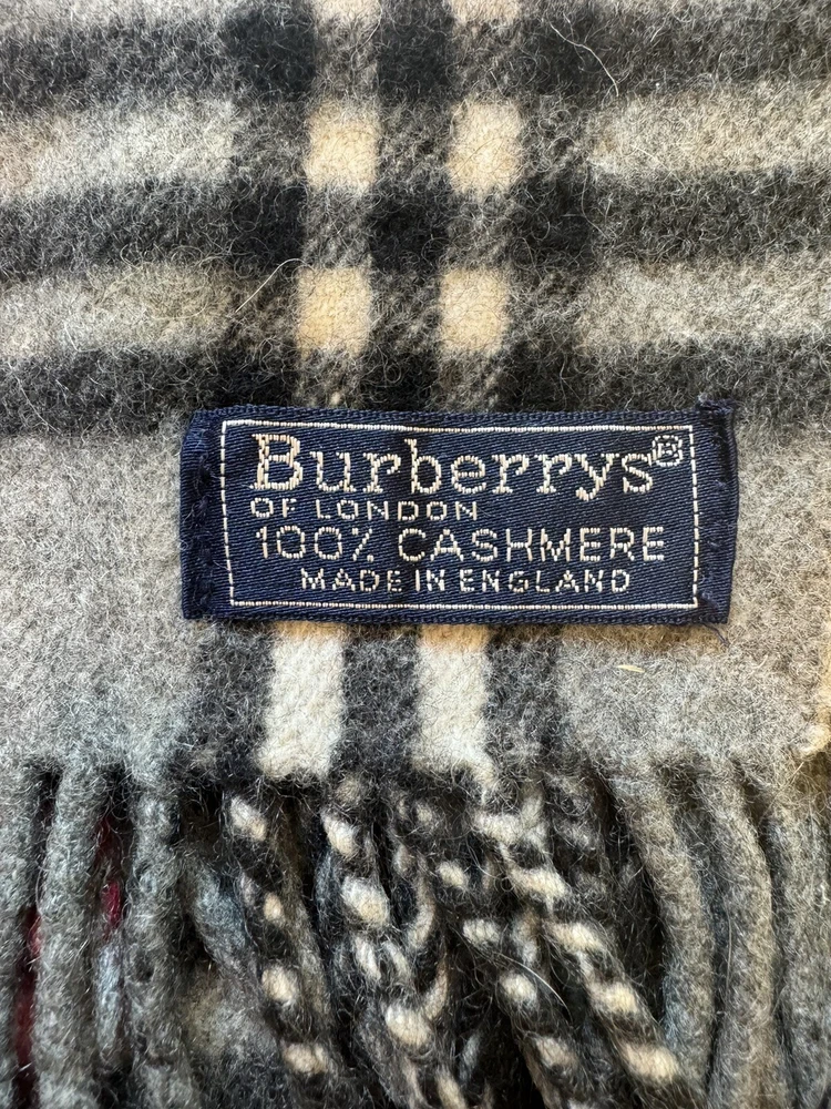 A classic vintage Burberry 100% cashmere long scarf! Perfect for you or a loved one. Dry clean only. All our cashmere comes in a clear sealed bag to protect your purchase. Weight: 4 oz Condition: Item is in very good condition. No holes. Some wear in a few areas. See photos! APPROXIMATE MEASUREMENTS (Unstretched ) WHEN LAYING FLAT: Width: 10” Length: 56” Material: 100% cashmere Check out our other items! :) Lots of beautiful clothing, accessories and shoes coming to the shop. Follow us on eBay (seller: BFCloset) for a first look!