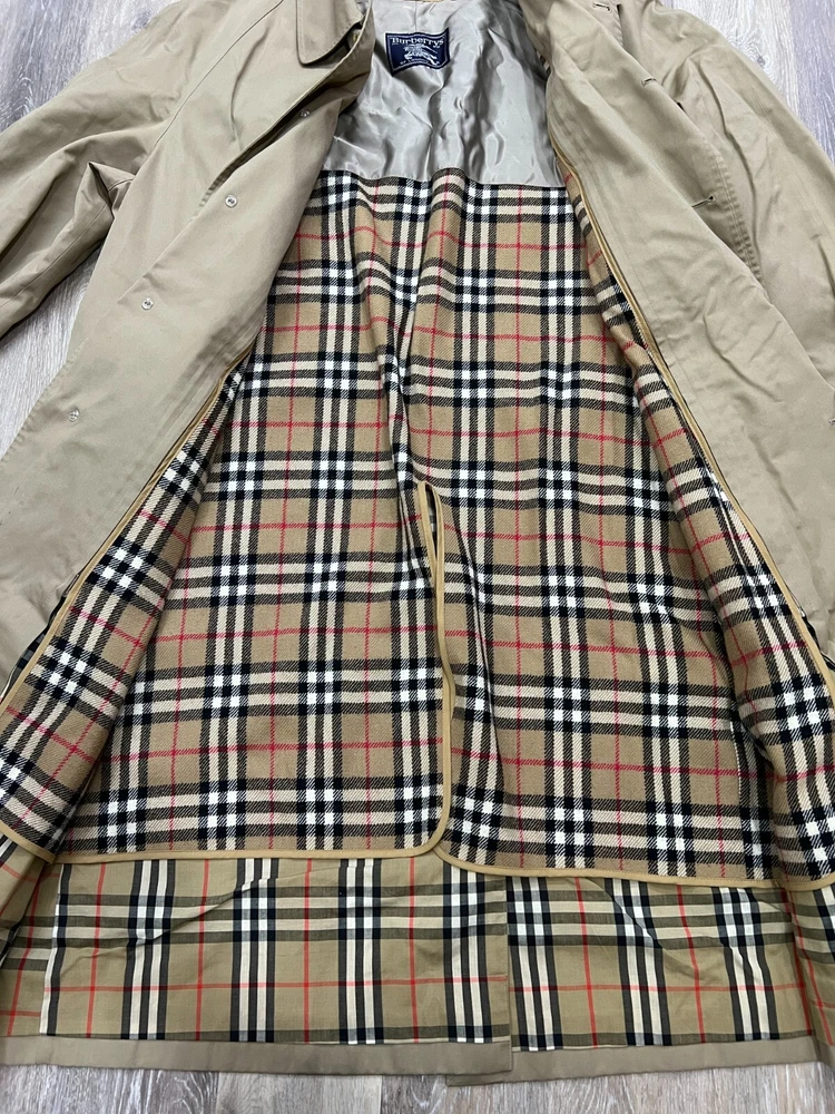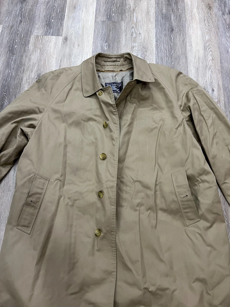 Vintage Burberry Beige Nova Trench Coat 100% Wool Liner Mens Size 52 Extra Long Condition: Pre-owned with one small stain mark on inside jacket (See last photo). No rips, holes, or tears. Smoke-free. See all photos for exact condition. Length: 50 Pit to Pit: 30 Please be sure to reference all of the photos for the item's condition! Thank you for checking out my product, please feel free to browse my store as well for other great deals! Please message me if you have any questions or concerns about this product.