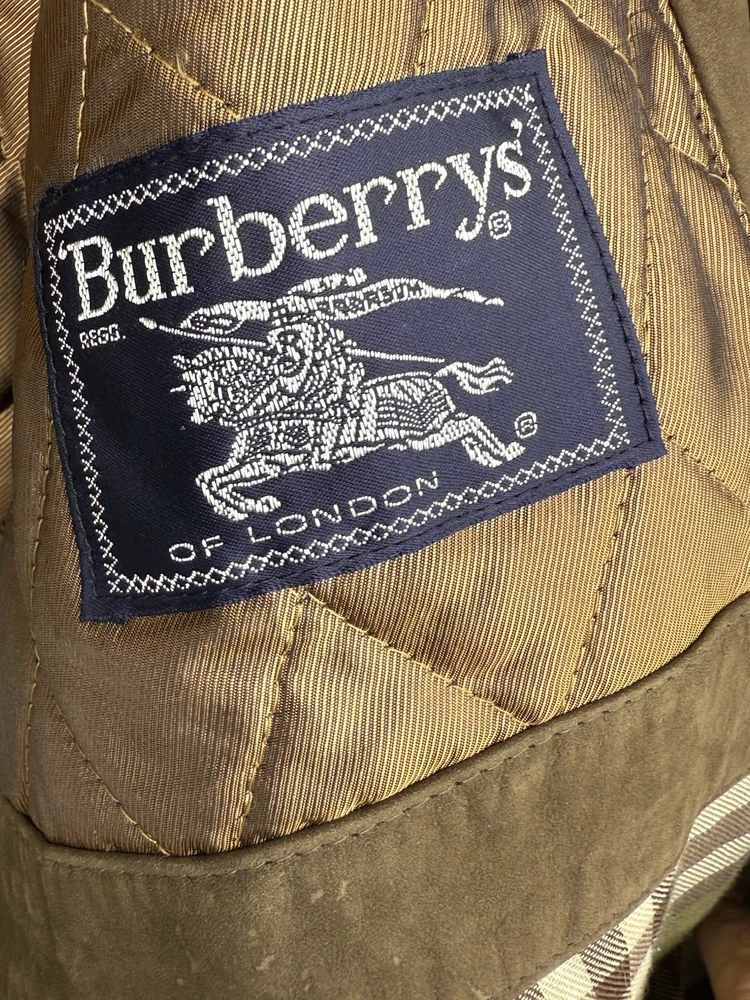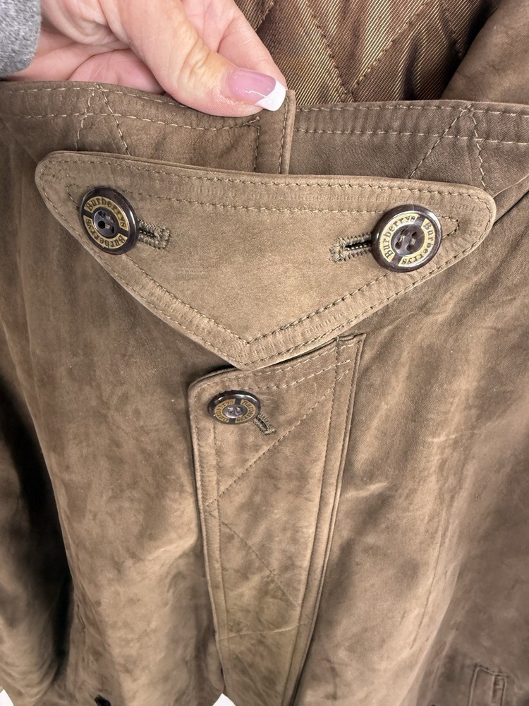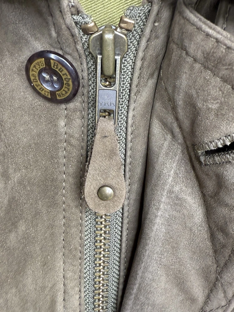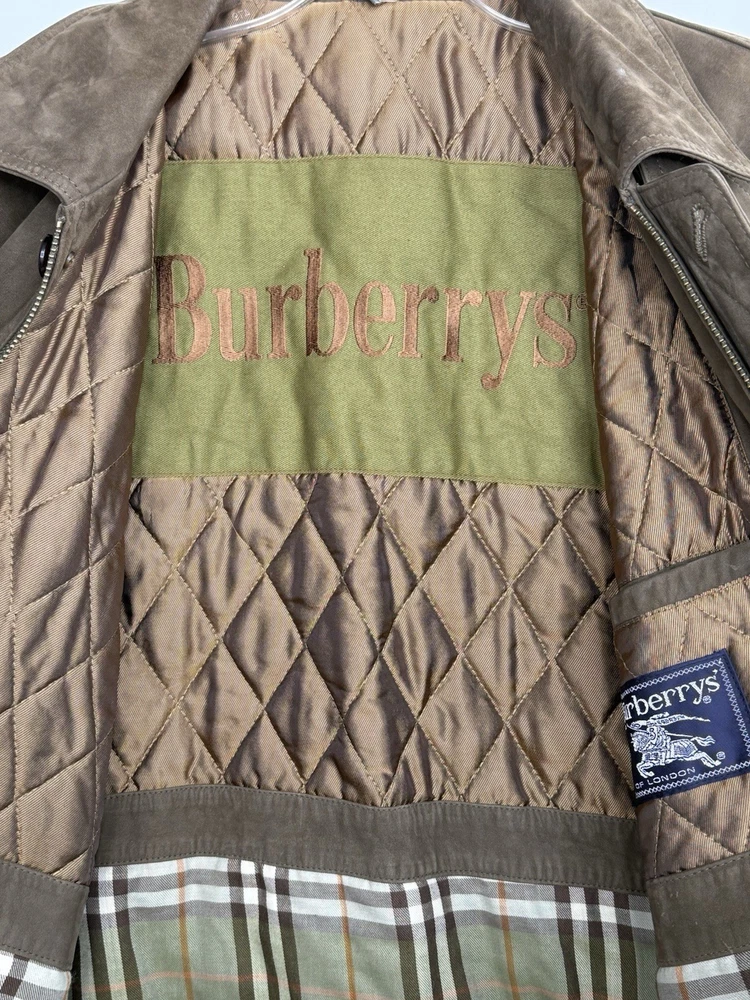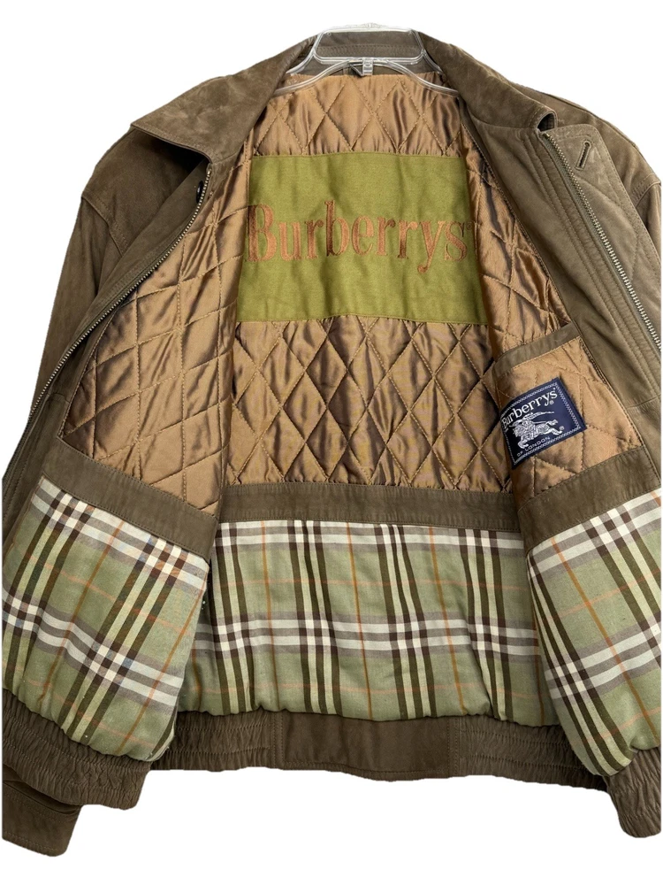 Vintage Burberry Mens Jacket XL Brown Suede Leather Bomber Aviator Burberrys 90s In very good overall condition - some small spots on front that could be professionally cleaned out. Measurements laying flat: Pit to Pit 27" Length 29" Shoulder Seam to Seam 24.5" Sleeves 24.25"