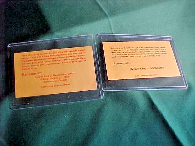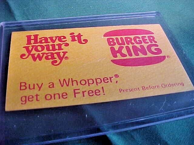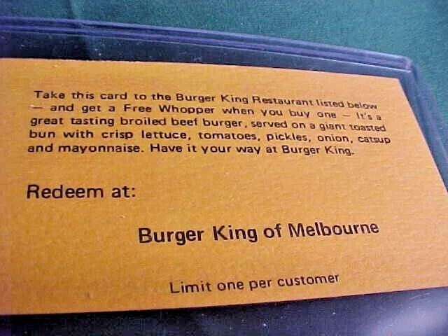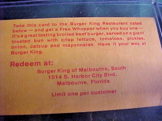 Vintage Burger King Whopper Discount Coupons Melbourne FL