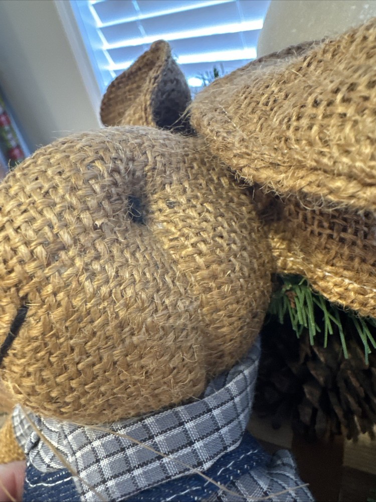 The Vintage Burlap Bunny Rabbit Set is a charming handmade set featuring a rabbit made from fabric burlap material. With its rustic and vintage appeal, this set is perfect for adding a touch of whimsy to any decor or Easter celebration. The attention to detail in the craftsmanship makes this a delightful addition to any collection of vintage-inspired items. Made in Haiti.