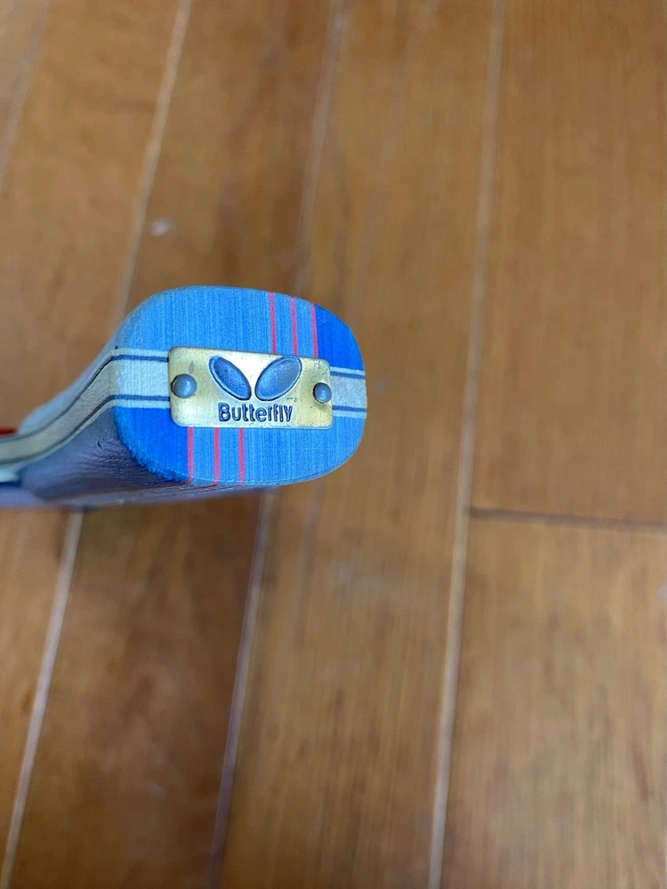 Vintage “Butterfly” Table Tennis Paddle. Yuki “TBC 401”. Tamasu Tokyo. Used. Comes with “Butterfly “ protective case. Case does have writing on it as well as a stain on the back, but the zip is in good working order. Paddle is in great condition! Just a small portion on the edge of the black rubber side of the paddle is missing. The red rubber side of the paddle is in perfect condition! The handle is in good condition also. There is, however, writing on it.