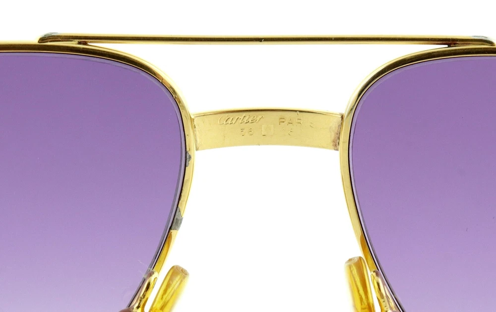 Vintage CARTIER C Decor 56mm 23K Gold Aviator Sunglasses France Excellent Unisex