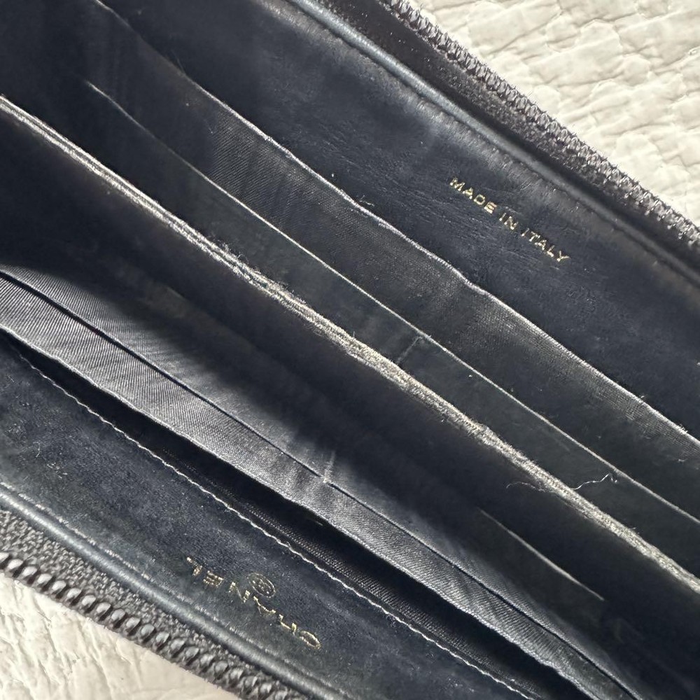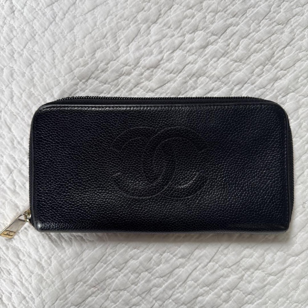 Rare CHANEL Round Zipper Wallet Long Wallet Black Caviar Skin CC Logo Description * Brand: CHANEL * Material: Caviar Skin Leather * Color: Black * Size: * Width: Approximately 19 cm 7.48 inches * Height: Approximately 10 cm 3.94 inches * Depth: Approximately 2 cm 0.79 inches * Condition: Scratches and dirt overall but usable. * Accessories: Serial number 94 series * Specification: Round zipper closure multiple card slots bill compartments coin pocket. * Features: Iconic CC logo durable caviar skin material elegant design. Thank you very much for visiting my auction. Language: Japanese Please judge with a photograph. Please have a question I want to do a good deal Payment I accept PAYPAL Payoneer Please make the payment within 5 days after the end of auction. Shipping Worldwide Shipping: Economy shipping, Japan Post, with tracking number EMS+20$ (insurance &tracking number 3-7 days to USA.) Terms of Sale If you would like to know more about this item, please contact me before bidding. Items will be sent out within 4 business days after the payment received. When there is a different problem from the indicated contents, please tell me about it within two week. I accept returns only if items did not match the description. Buyer pays return shipping. About Us Return is accepted if only the item is different from item's description. Thank you for looking!!! International Buyers - Please Note: ・Import duties, taxes and charges are not included in the item price or shipping charges. These charges are the buyer’s responsibility. ・Please check with your country’s customs office to determine what these additional costs will be prior to bidding/buying. ・These charges are normally collected by the delivering freight (shipping) company or when you pick the item up - do not confuse them for additional shipping charges. ・We do not mark merchandise values below value or mark items as “gifts” - US and International government regulations prohibit such behavior.