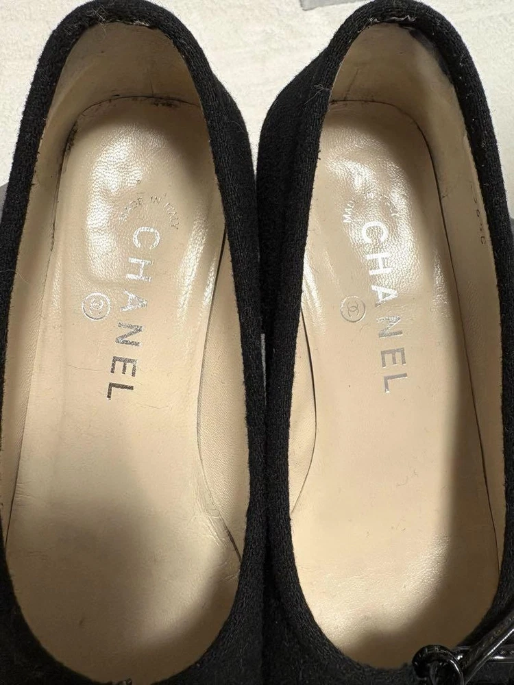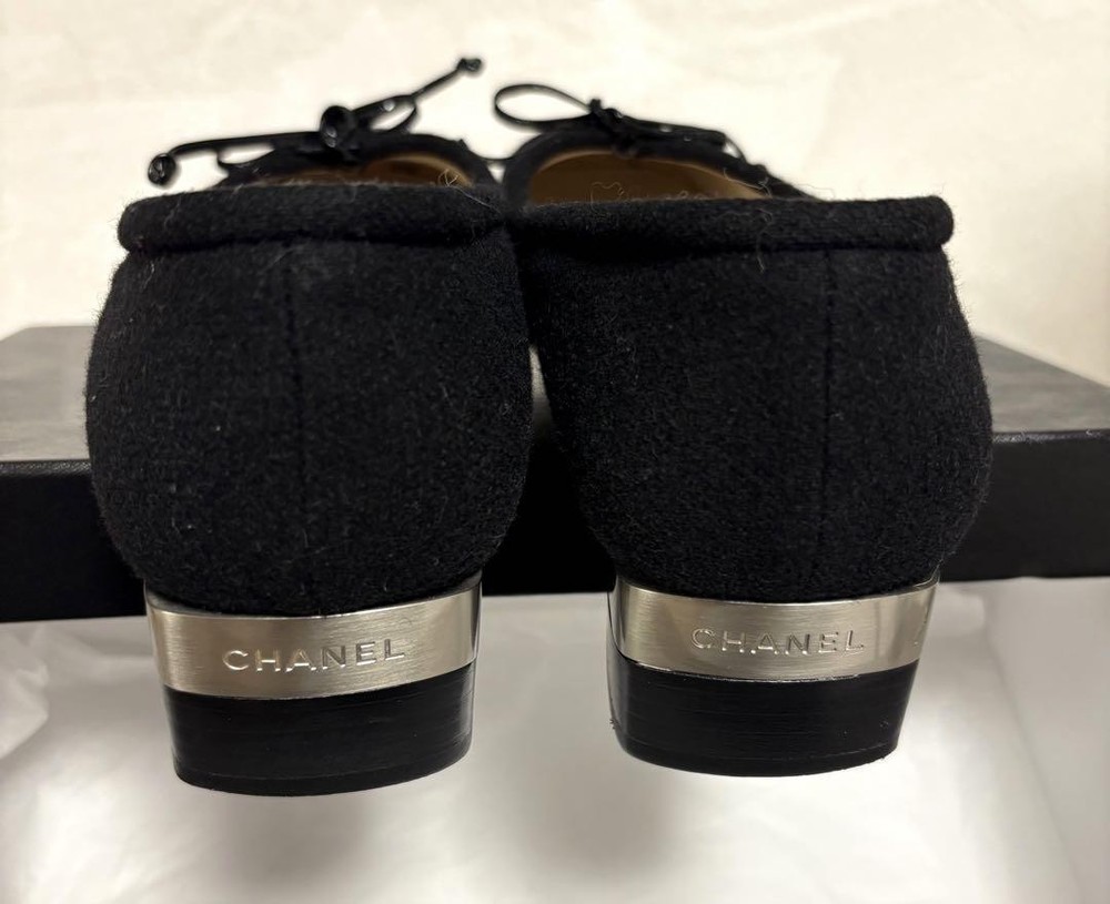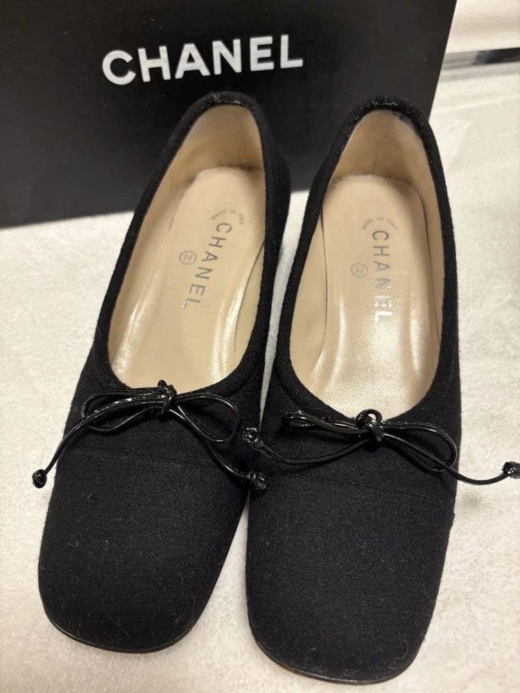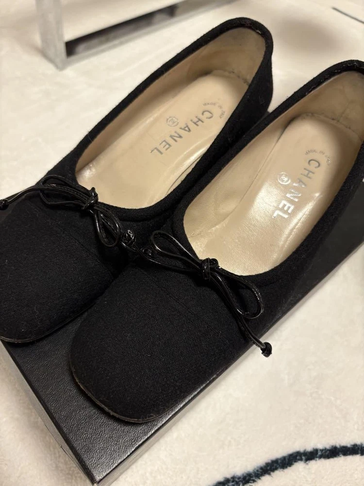 Rare CHANEL Black Wool Ribbon Ballet Flats Chunky Heel EU 36.5 US 6.5-7 Description * Brand: CHANEL * Size: 36.5 EU (approximately 23.5-24 cm / US 6.5-7) * Color: Black * Material: Wool (felt-like) with enamel ribbon * Heel Height: 3.5 cm (approximately 1.4 inches) * Condition: Gently Used. Soles show some wear. Left ribbon may need adjustment. * Design: Ballet flat style with chunky heel * Features: Comfortable and stable heel, elegant design Thank you very much for visiting my auction. Language: Japanese Please judge with a photograph. Please have a question I want to do a good deal Payment I accept PAYPAL Payoneer Please make the payment within 5 days after the end of auction. Shipping Worldwide Shipping: Economy shipping, Japan Post, with tracking number EMS+20$ (insurance &tracking number 3-7 days to USA.) Terms of Sale If you would like to know more about this item, please contact me before bidding. Items will be sent out within 4 business days after the payment received. When there is a different problem from the indicated contents, please tell me about it within two week. I accept returns only if items did not match the description. Buyer pays return shipping. About Us Return is accepted if only the item is different from item's description. Thank you for looking!!! International Buyers - Please Note: ・Import duties, taxes and charges are not included in the item price or shipping charges. These charges are the buyer’s responsibility. ・Please check with your country’s customs office to determine what these additional costs will be prior to bidding/buying. ・These charges are normally collected by the delivering freight (shipping) company or when you pick the item up - do not confuse them for additional shipping charges. ・We do not mark merchandise values below value or mark items as “gifts” - US and International government regulations prohibit such behavior.