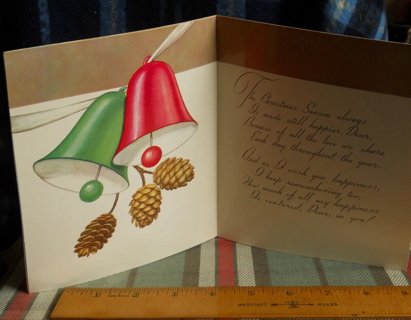 Vintage CHRISTMAS GREETING CARD vintage RUST CRAFT CARD unused copyright 1952 TO MY HUSBAND CARD HAS SMOOTH FINISH RED SATIN PILLOW - CHRISTMAS MESSAGE - SIZE 5 3/4"W X 7" H with envelope * WILL combine cards for shipping OR BUY 5 (five ) CARDS * SHIPPING FREE Please !! let me know if you plan to do multi card ordering