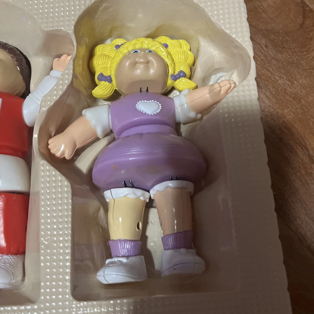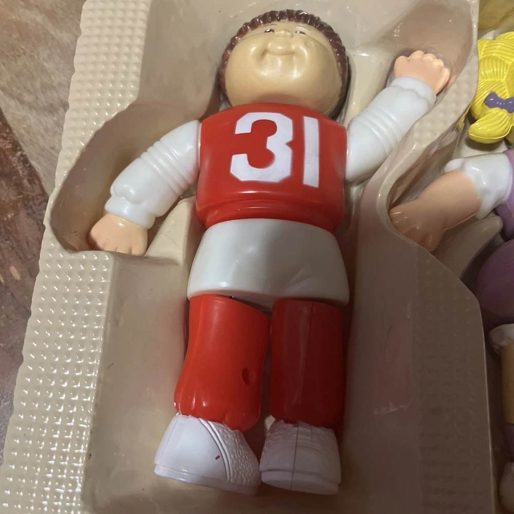 This vintage Cabbage Patch Kids magnetic figure puzzle set is a must-have for collectors and fans alike. The set includes all the figures needed to complete the puzzle, and features a boy doll design. The plastic material and vintage style make it a unique addition to any collection. The set is from the Cabbage Patch Kids product line and is considered a type of figure. It is perfect for those interested in antique dolls and bears. Although it is not complete with the hard box, it is still a great addition to any collection.