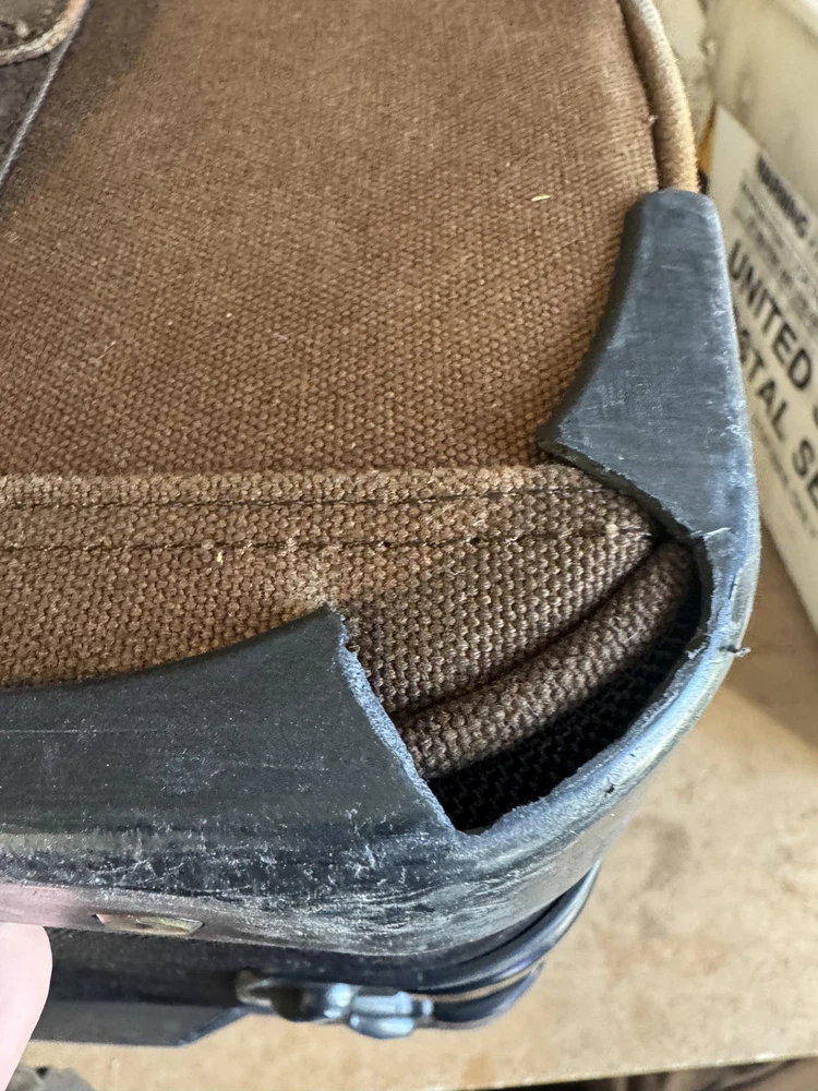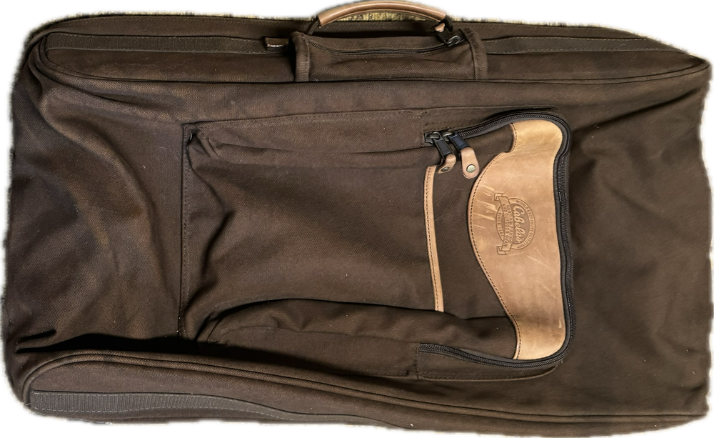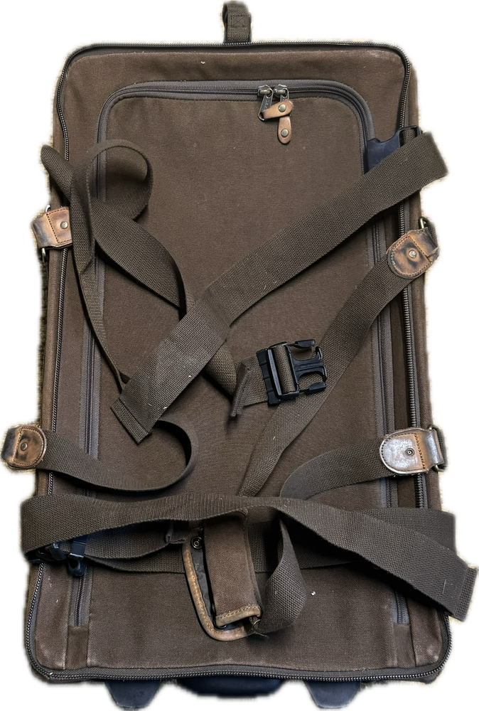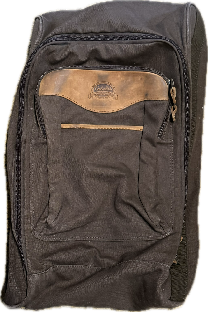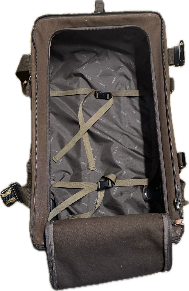 Vintage Cabela's Outback Deluxe 3-Piece Canvas and Leather Travel Suitcase Set Description This is the distinguished, vintage Cabela's Outback Deluxe 3-Piece Luggage Set, a rare and highly sought-after collection designed for the rugged traveler, sportsman, or enthusiast of classic outdoor gear. Built with durable canvas material and richly accented with genuine leather trim and details, this set combines timeless aesthetic appeal with the legendary durability Cabela's is known for. The collection typically includes a large wheeled duffel bag/suitcase, a mid-sized duffel, and a smaller carry-on or accessory bag, providing a comprehensive and coordinated solution for extended travel, hunting trips, or deployment. The design emphasizes strength, capacity, and organizational utility, perfect for those who require reliable luggage that looks as classic as it performs. Key Features & Design Elements Three-Piece Matched Set: Includes a large, wheeled, suitcase/duffel, with 2 zip on front attachment packs. Rugged Materials: Constructed from heavy-duty canvas, renowned for its resilience and ability to withstand rough handling. Premium Leather Accents: Features genuine leather trim, straps, and handles, enhancing both durability and the classic, vintage "Outback Deluxe" aesthetic. High-Capacity Design: Offers ample storage space across the three pieces, ideal for extended trips or carrying bulky outdoor gear. Organizational Pockets: Includes multiple internal and external pockets, with straps and dividers designed to keep hunting, fishing, or travel essentials organized and secure. Durable Zippers: Equipped with heavy-duty zippers and reinforced stitching to ensure reliable closure under heavy loads. Condition: Used by our Troops in Good Condition, Has some signs of use, has some scuffs and scrapes, has some sun bleaching / fading, fully functional, Overall Good Condition.