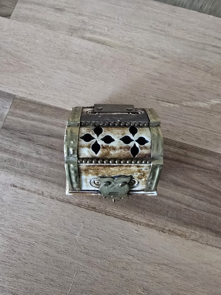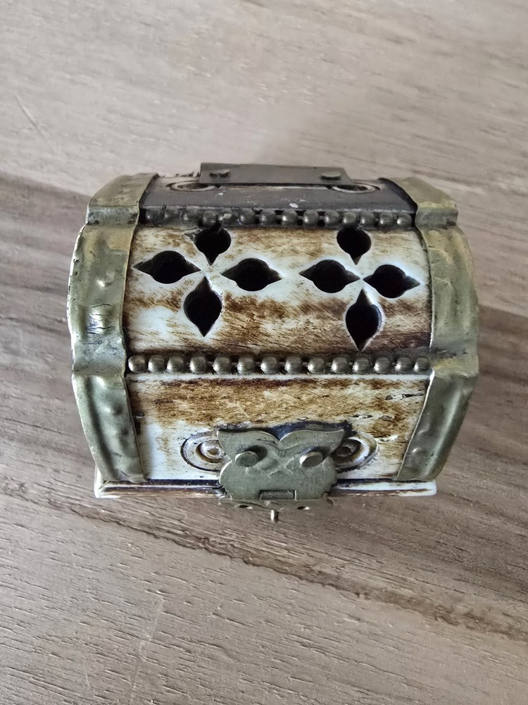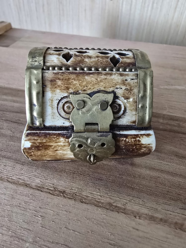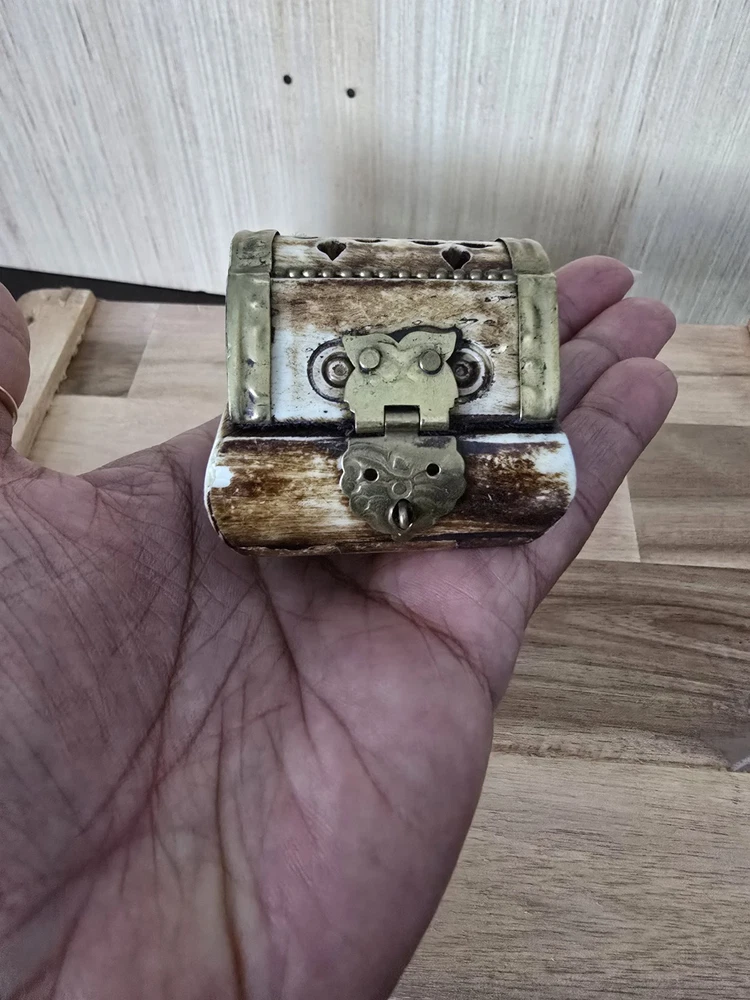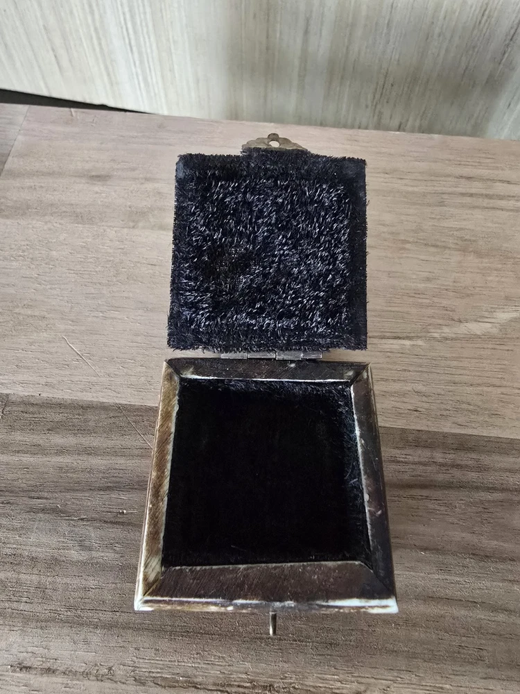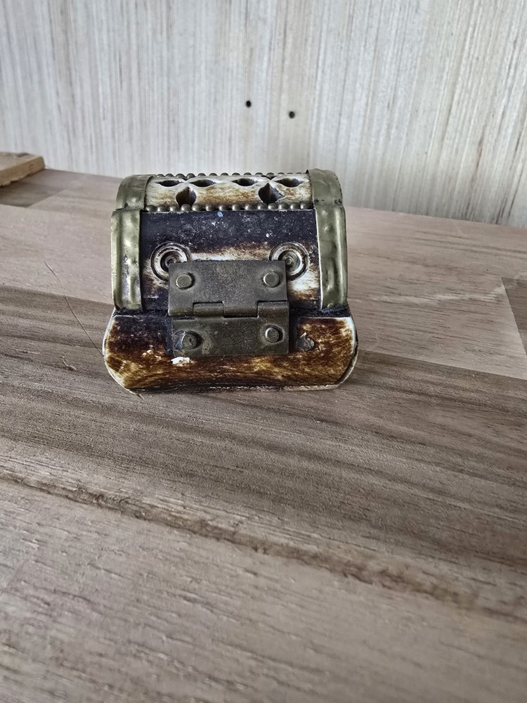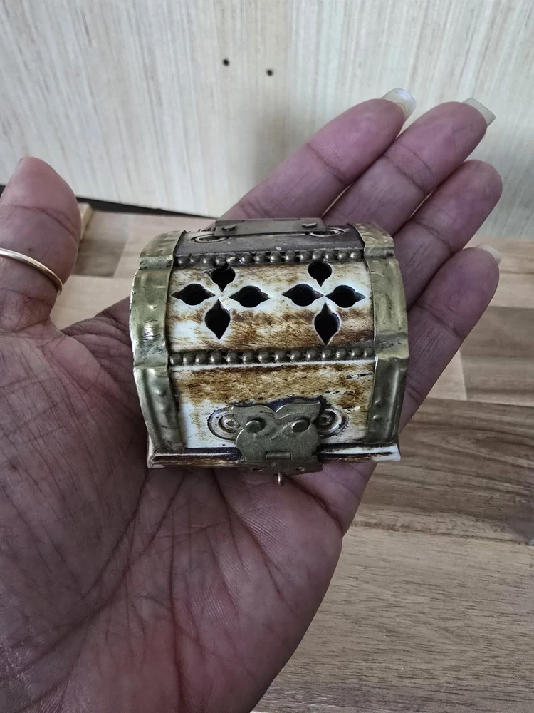 Room: Any Room Size: Small Department: Adults Handmade: Yes Type: Trinket Box Features: With Lid, lined Original/Reproduction: Original Color: Multicolor Number in Pack: 1 Engraved: No Time Period Manufactured: 1970-1979 Collection: Keepsake Boxes Closure Type: latch Finish: Antique Customized: No Material: Brass, Camel Bone Suitable For: Small Objects Brand: Unbranded Theme: Art Style: Ethnic Care Instructions: Clean with Damp Cloth Pattern: All-Over Subject: art Country of Origin: India Occasion: All Occasions Shape: Rectangle