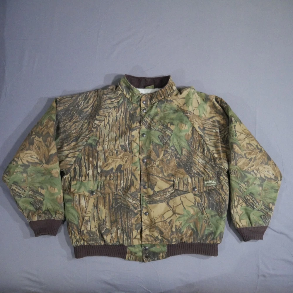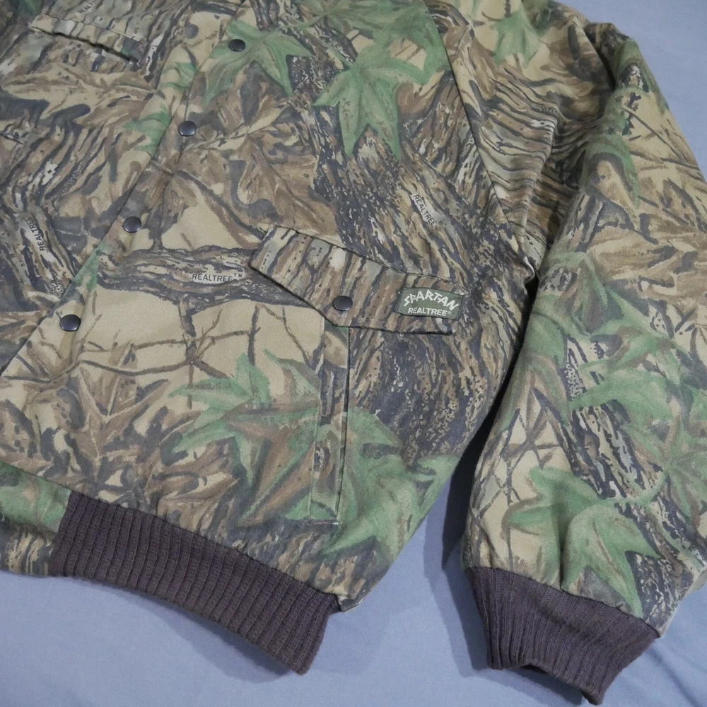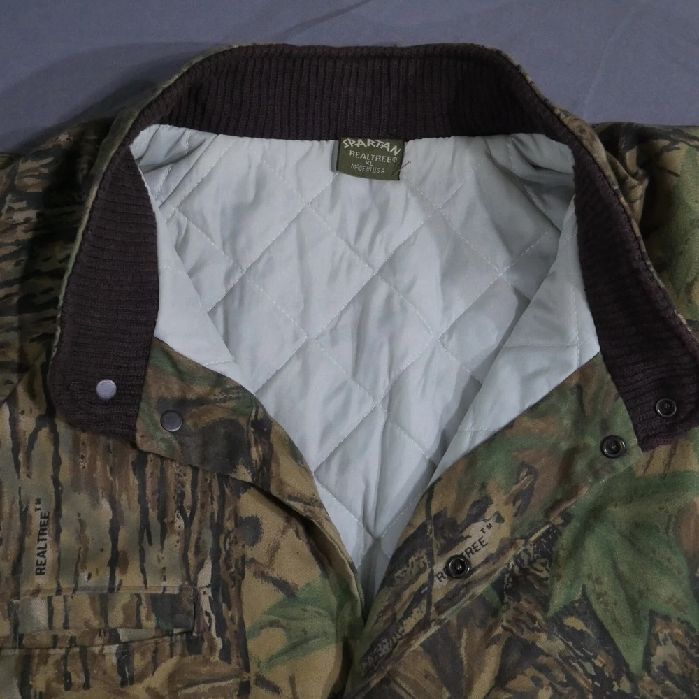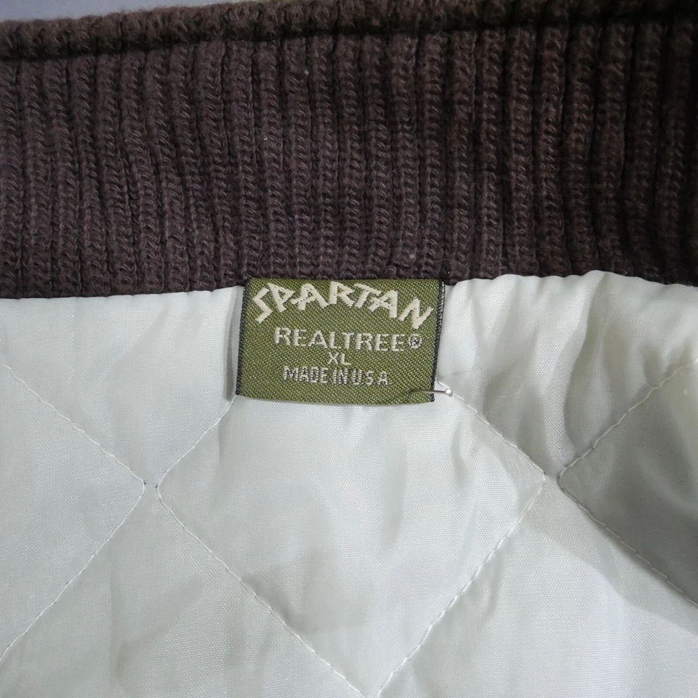 Seller Notes: “Worn In Look No Rips, Holes Or Stains See All Photos For More Details” Style: Bomber Jacket Occasion: Casual Season: Fall, Winter Handmade: No Vintage: Yes Outer Shell Material: Cotton Insulation Material: Polyester Size Type: Regular Department: Men Pattern: Camouflage Garment Care: Machine Washable Brand: Spartan Theme: Dad, Nature, Outdoor, USA, Grandpa, Street Wear, Hype Fit: Regular Collar Style: Stand-Up Country/Region of Manufacture: United States Lining Material: Polyester Features: Lightweight, Lined, Pockets, Wind-Resistant Size: XL Personalize: No Color: Brown Jacket/Coat Length: Short Closure: Snap Fabric Type: Knit Accents: Logo, Quilted Lining, Zipper Type: Coat Performance/Activity: Hiking, Hunting, Walking, Fishing Chest Size: 53 in