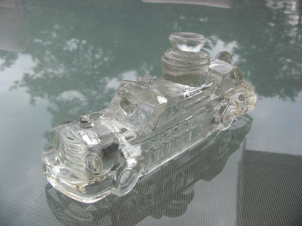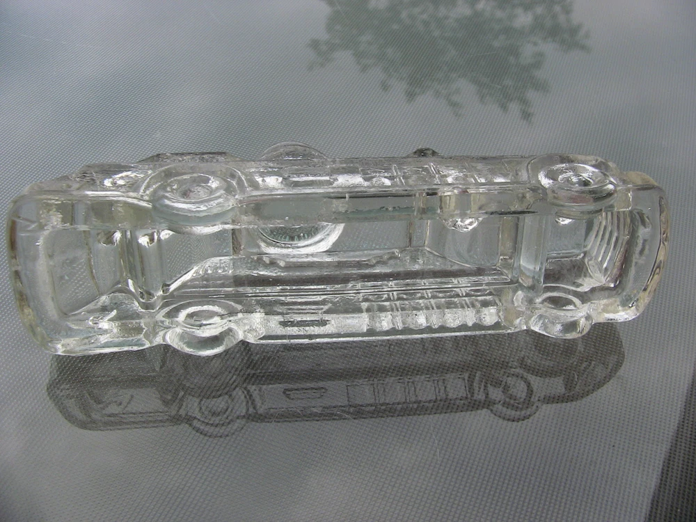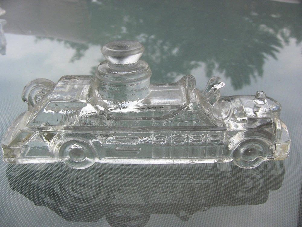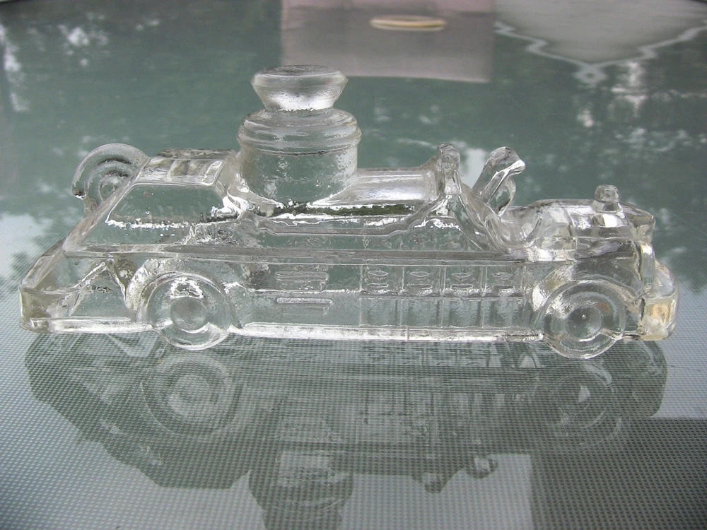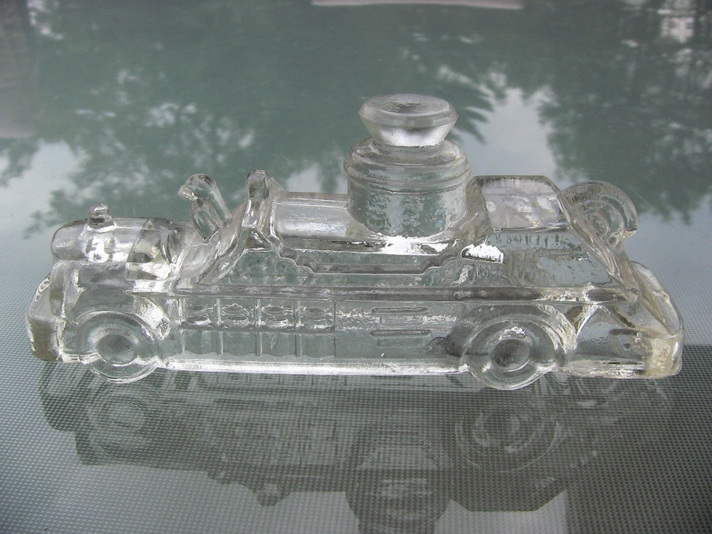 Vintage Candy Container Vintage Dimestore Candy Glass Figurine Fire Engine Truck See more Vintage Dimestore & Novelty Items here! Charming Vintage Dimestore Figural Novelty Glass Candy Container Thick chunky clear glass, probably dating to the 1940s or 1950s Fire Engine Truck Measures approx. 5.0" long by 1.25" wide by 2.0" high Very good used vintage condition.. No candy contents included. Some rough edges to the touch may be either fleabites or due to manufacturing mold, hard to tell. Please see pictures for best indication of condition. Please see pictures for best indication of condition, and ask any questions before bidding or buying. SNP-61 2014-07-19-05/2012-12-03-14C Buyer pays $4.00 flat shipping from Saginaw, Michigan 48604, lower 48 states ONLY. Note: Vintage items have previously been used and therefore may show signs of wear commensurate with their age, including odors. We will always state in the description if there are any major flaws or damage to the item, which we try to show in the pictures; our items therefore are being sold in "AS IS" and "AS DESCRIBED" condition, so PLEASE, read the full listing description and the condition report, and view all pictures provided. If you find that we have failed to accurately describe the item, please contact us immediately--we are committed to resolve the issue with you amicably. All measurements are approximate. All used electrical equipment should be thoroughly inspected by a professional before use. Check us out online at reclamationpoint for a preview of our newest pickings coming to market soon.
