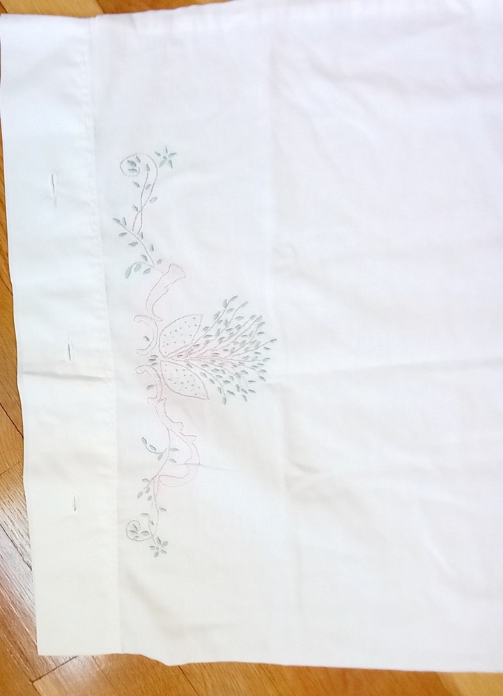 This vintage Cannon flat sheet and pillowcase set is made of 100% cotton percale, with a beautiful floral embroidered pattern. The rectangular shape and double size make it perfect for adults or teens, and the white color complements any bedroom decor. The set includes one flat sheet and one pillowcase, and it's ideal for those who love vintage or retro style. The Cannon set is a great addition to any bedding collection, and it's perfect for those who appreciate the quality and beauty of vintage items. Made in the United States, this set is not only stylish but also durable, and it will surely become a cherished addition to your home.