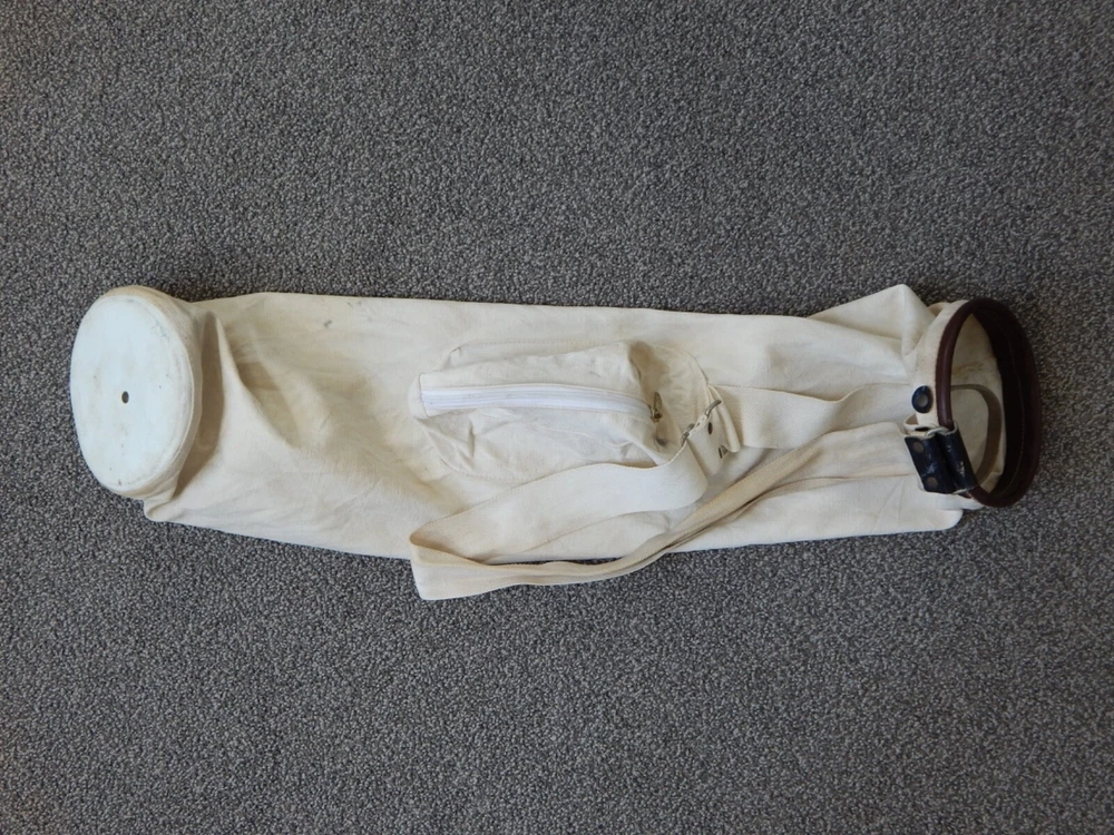 Vintage Canvas Sunday Golf Club Bag Bag measures 33" 6" club opening One pocket with a working zipper Shoulder strap is securely attached Bag is in good vintage condition - showing some staining and marks on the canvas but no rips or tears Nice canvas Sunday bag We do not ship to Alaska, Hawaii, Puerto Rico or P.O boxes (there is an extra cost that we would need to add on if you want them shipped to these areas. If you don’t mind paying these costs, please let us know in a message first and we will gladly ship them to you) Seller is not responsible for the breakage of vintage or antique clubs