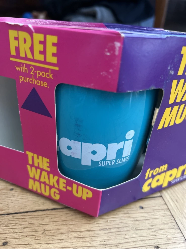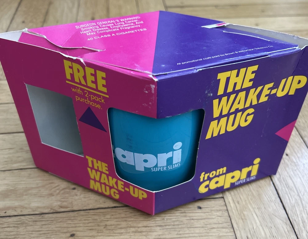 + Vintage Capri Super Slims Cigarettes Teal Plastic Coffee Wake Up Mug Cup NEW