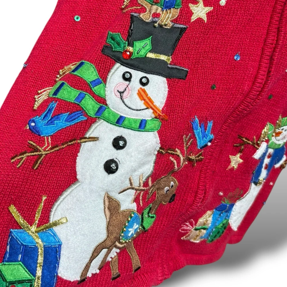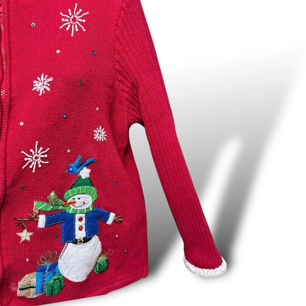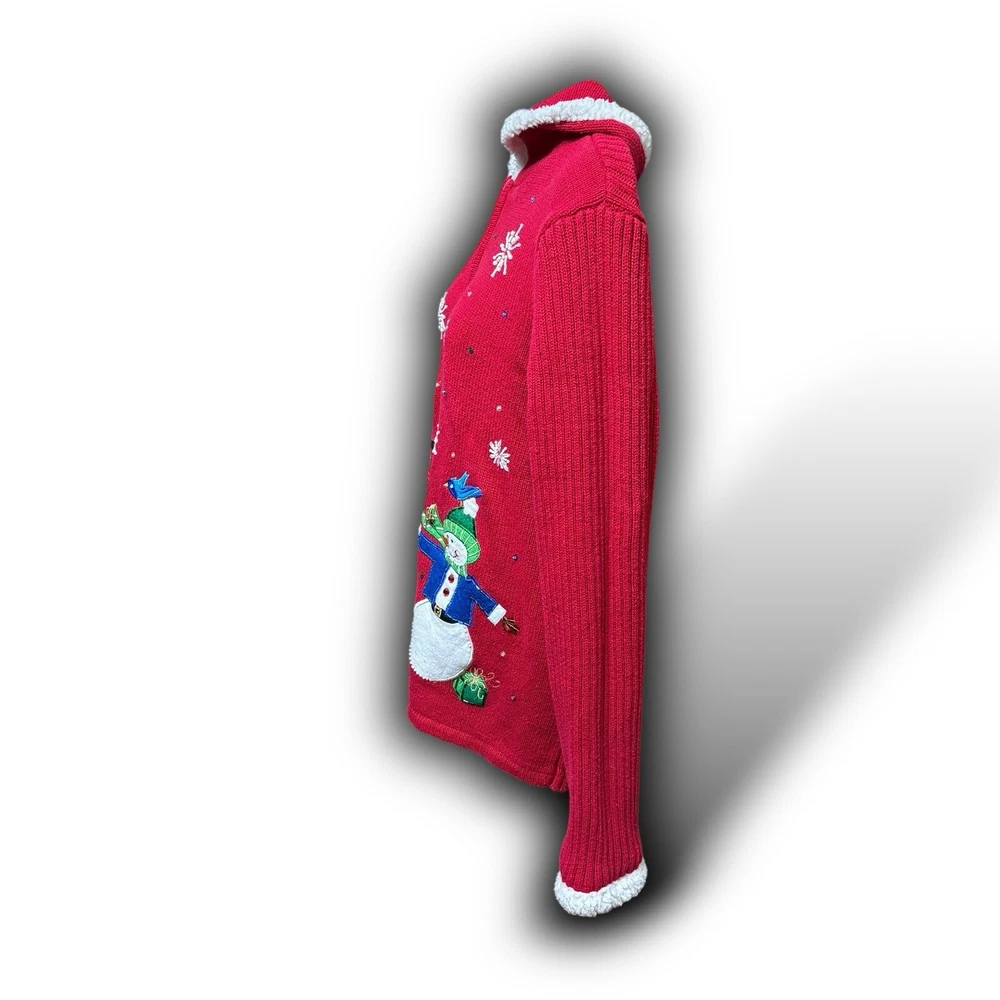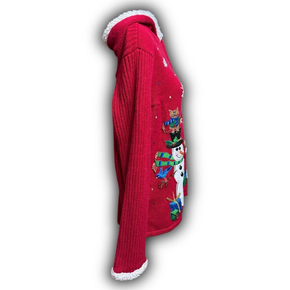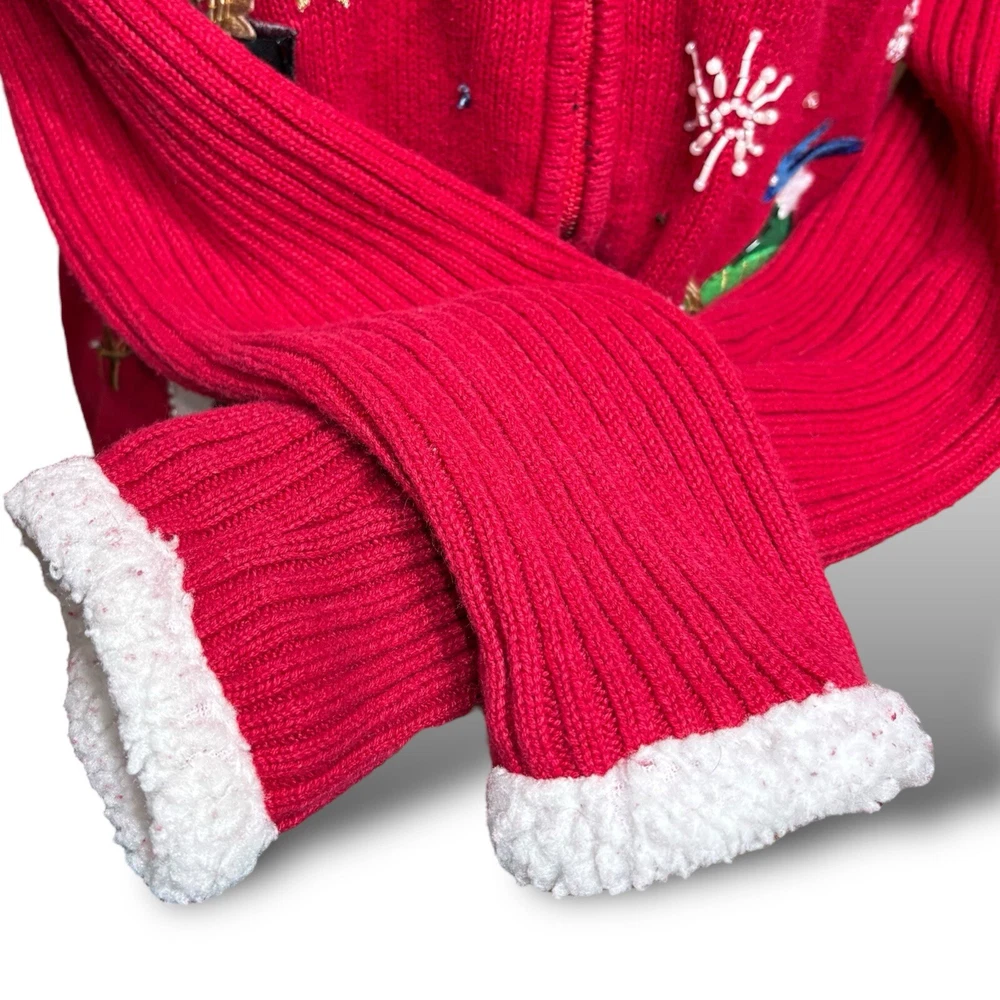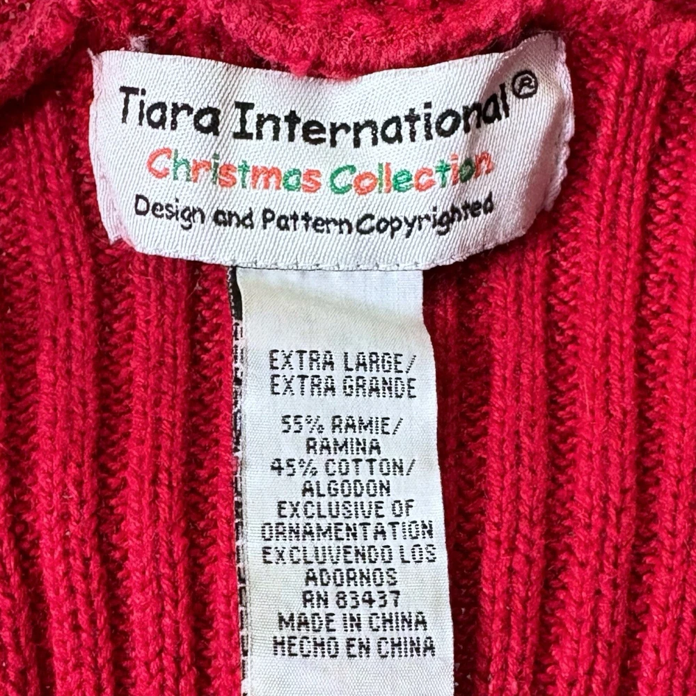 Vintage Cardigan - Tiara International - Christmas - Hooded / Zip - Women's XL Details: -Christmas Collection -55% Ramie, 45% Cotton -Embroidered -Beaded -Multicolored Measurements: -Length: Approximately 23" inches -Chest: Approximately 43" inches -Zipper: Approximately 20" inches -Sleeve(s): Approximately 23" inches Washing Instructions: -Hand wash cold separately -Do not machine wash -Do not twist or wring -Do not bleach -Reshape and dry flat -Iron on lowest setting as needed -Do not iron on decoration *Cleaned per manufacturer's instructions. Condition: -Good, pre-owned condition. Moderate pilling on hood/cuff trim. Beadwork/appliques subject to unravel with further handling. Keywords: christmas cardigan, ugly christmas sweater, beaded, embroidered, festive, holiday, womens clothing, red, multicolored, hooded christmas top, tiara international sweater, christmas collection, vintage christmas, holiday knitwear, holiday party sweater