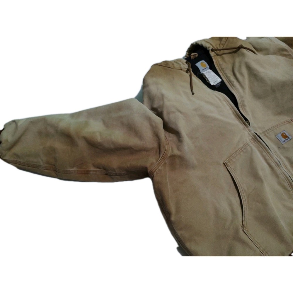 Vintage Carhartt J140 Size XL. This Carhartt jacket is faded with minor stains. Freshly washed. The zipper pull is missing, still zips. Shipped with USPS.