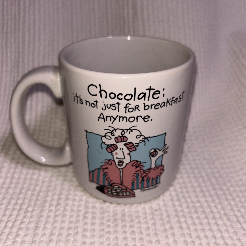 Never used This vintage Carlton Cards coffee mug is a must-have for any animation or cartoon character fan. Featuring a round shape and 11oz. capacity, it's perfect for all occasions and beverage types, including hot coffee. The mug is made of high-quality ceramic and porcelain material, ensuring its durability and long-lasting use. The mug's design is inspired by the popular saying, "Chocolate is not just for breakfast anymore." It comes with a coffee cup and mug set, making it an excellent addition to your collection. The mug is an original and licensed reproduction from Carlton Cards, manufactured in Thailand in the 1980s. It is a perfect gift for unisex adult and has no relation with vintage coffee mug, handmade, or custom bundle.