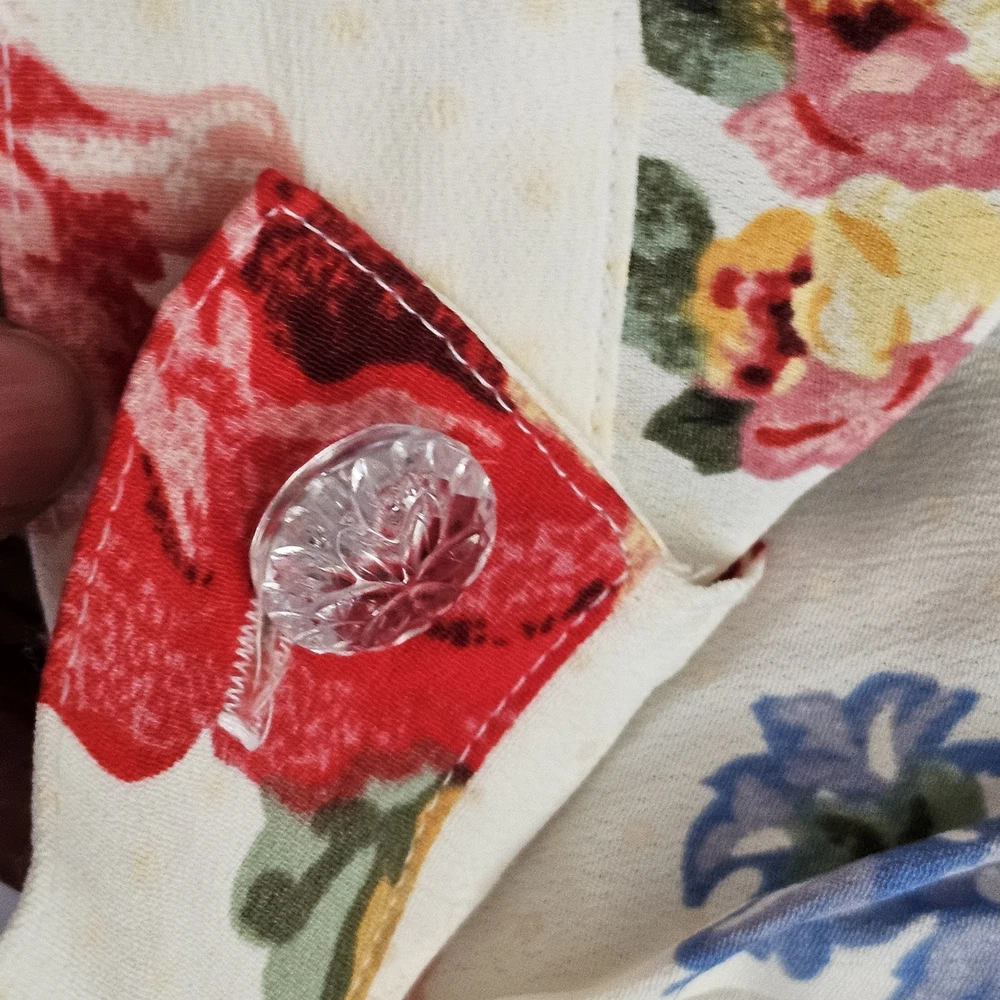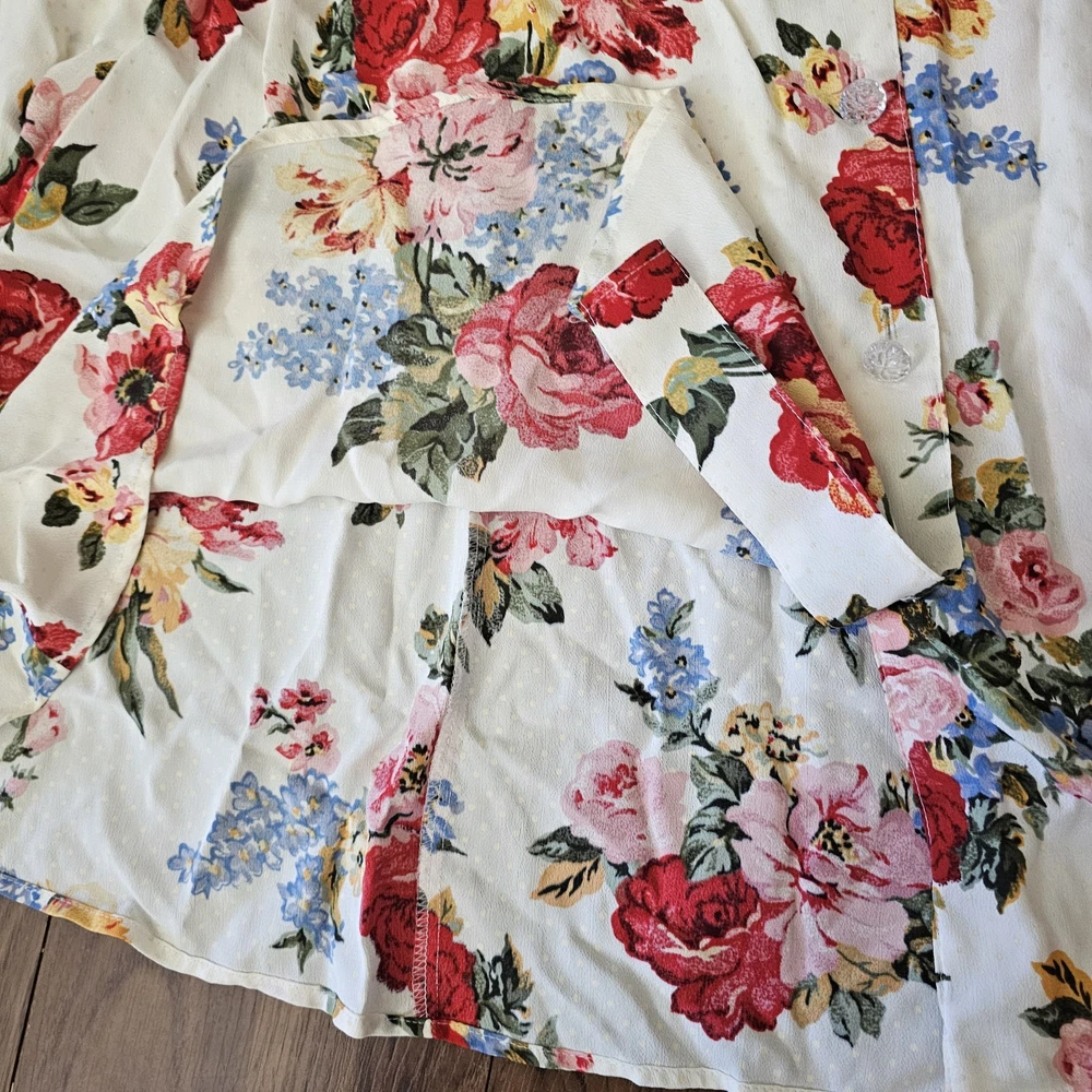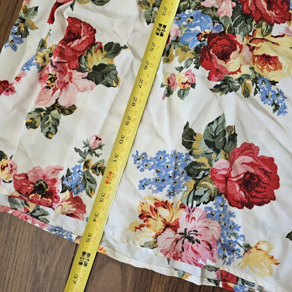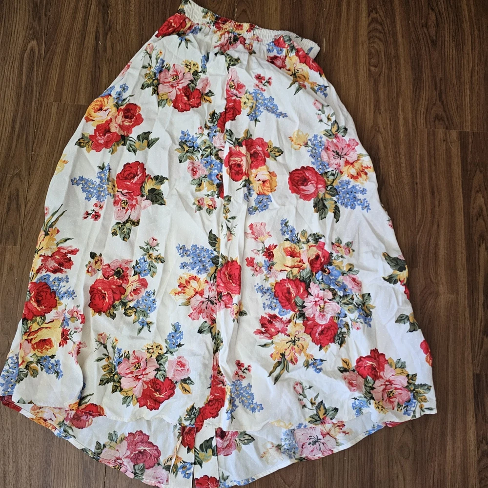 The Vintage Carole little Maxi Skirt in size 10 is a beautiful long button-down skirt in a floral pattern, perfect for a casual occasion. Made of rayon fabric, this multicolor skirt features an elastic waist for comfort. With a mid-rise and a bohemian, hippie, and tropical theme, this maxi skirt is ideal for summer, fall, and spring seasons. Designed by Carole Little in the United States, this vintage piece exudes a peasant cottage core style that is sure to add a touch of charm to any wardrobe.