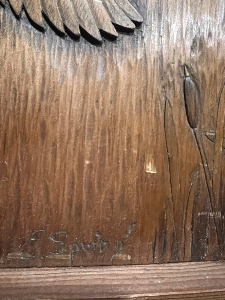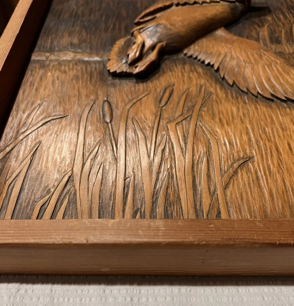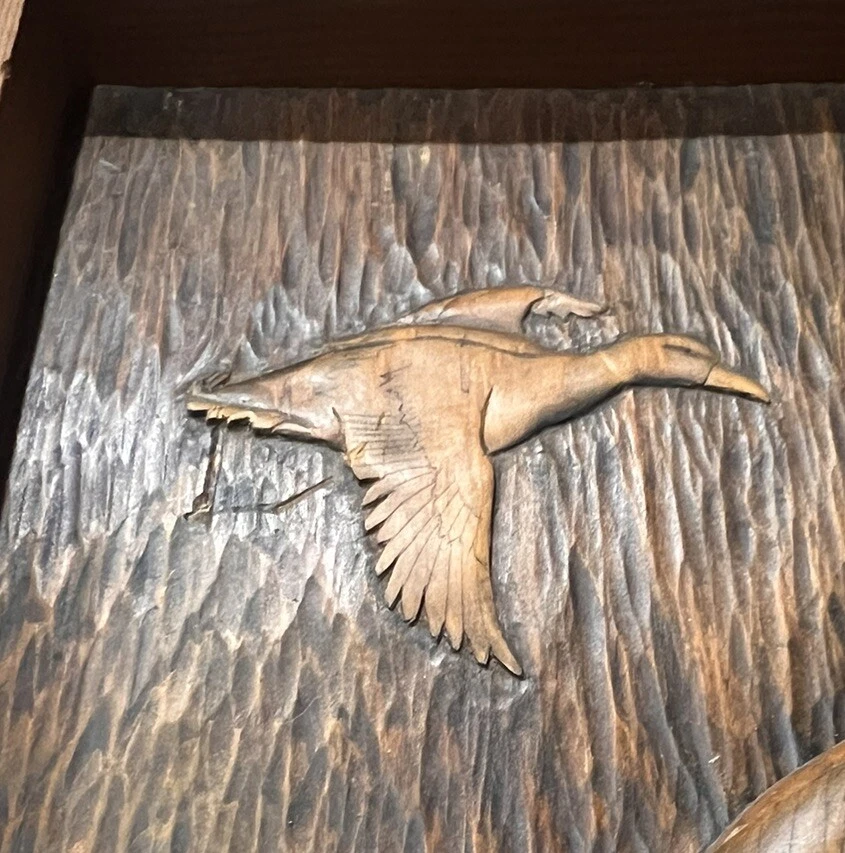 Vintage Carved Wood Bird Wall Art MCM 12.5”x14.5” Signed