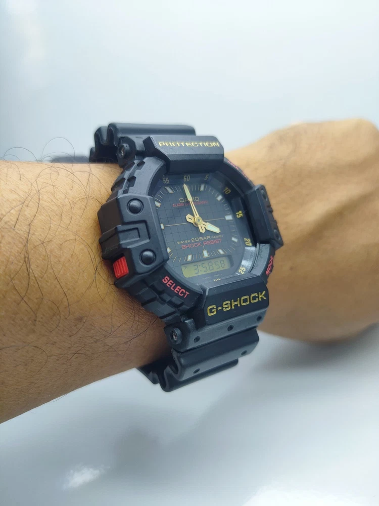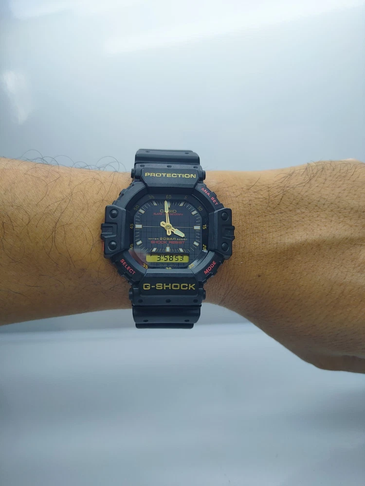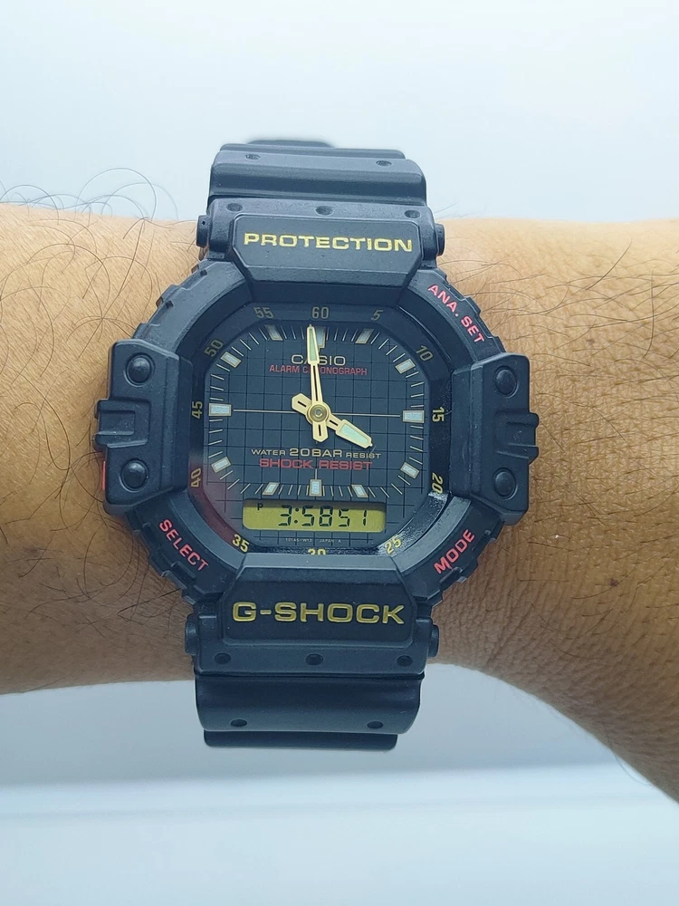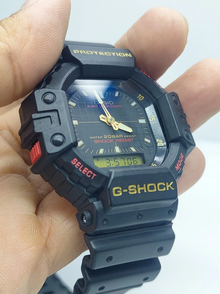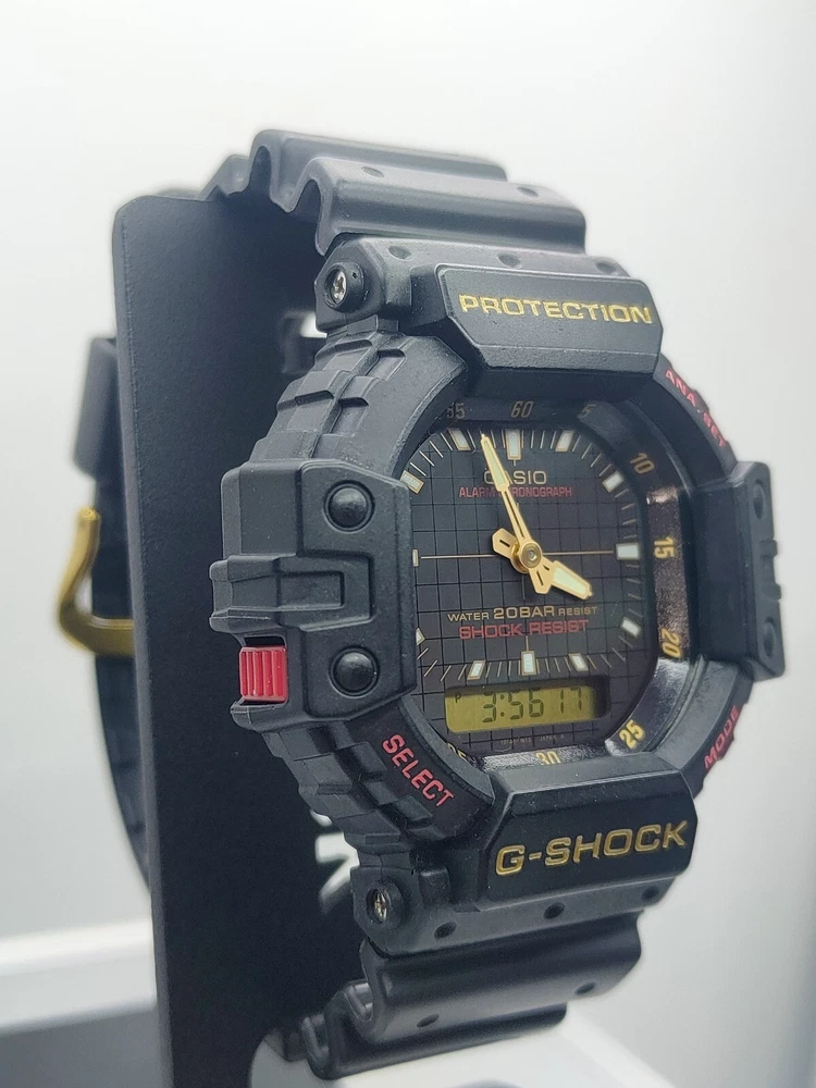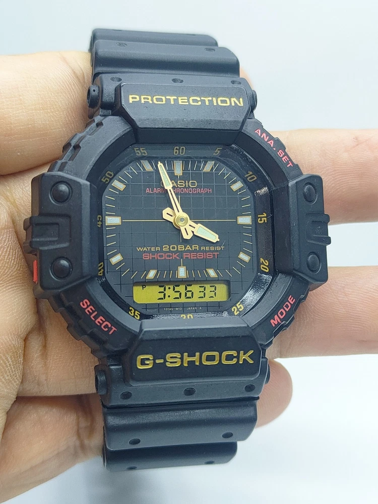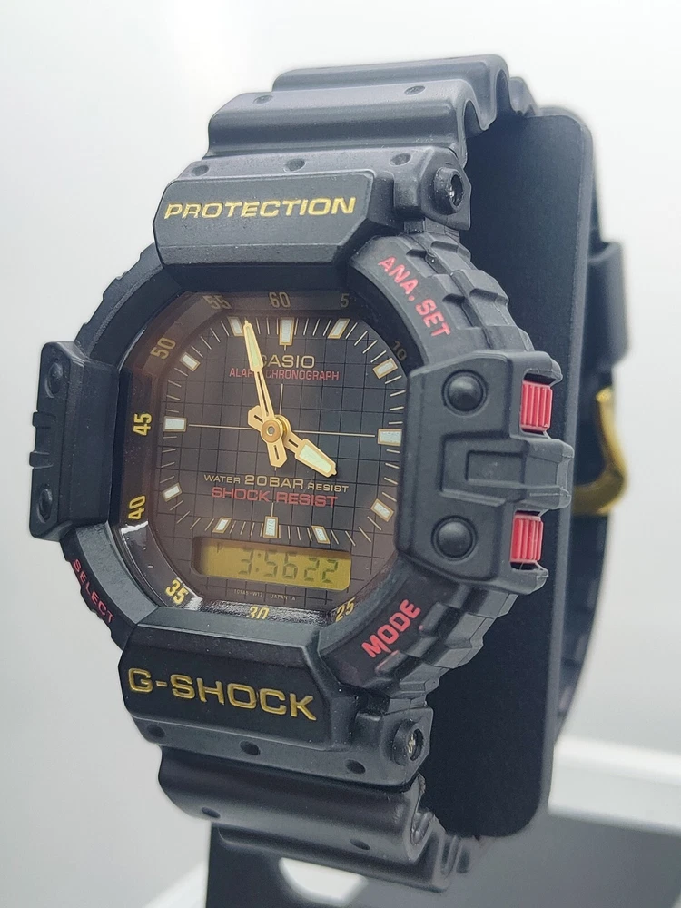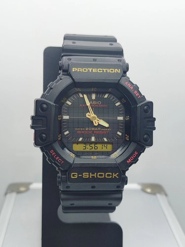 Vintage Casio G Shock AW-550-1E ANA-DIGI 380 Module (1993) Men Watch SUPER RARE ✈️ SHIPPING WORLDWIDE ✈️ Item : Vintage Casio G Shock AW-550-1E ANA-DIGI 380 Module (1993) Men Watch SUPER RARE Condition : Overall is in Good Condition. Beautiful With A Few Scratches & Dirt On B&B and Glass. Please Enjoy The Photos. Band & Bezel : New Custom Band & Bezel Function : All Analog & Digital Functional. Sound Tested ✅. Has NO Light Since Born. Accessories : Are Shown in This Picture ( Watch Only ) * Stand is not included -------------------------------------------------- Shipping : Worldwide shipping by Economy International Shipping with Tracking Number. Estimated shipping time is about 10 - 30 Working days. Note to International Buyers : Import duties, taxes and fees are not included in the item price or shipping costs. These charges are at the buyer's expense. Before buying or bidding on an item, please check with the customs authorities of your country to determine the value of these additional costs.