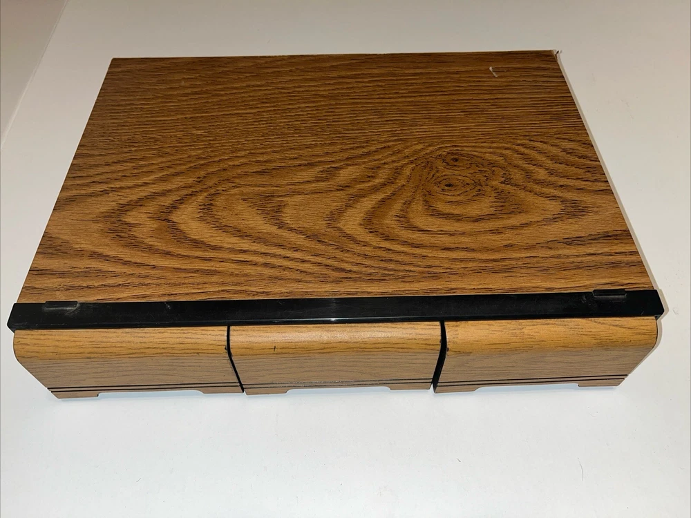 This vintage cassette audio tape holder is a three drawer storage case that is perfect for storing and organizing your audio cassettes. The faux wood material gives it a brown and black wood grained appearance that adds a touch of elegance to your music collection. It is designed to hold compact/audio cassettes and comes with a jewel case packaging type that is standard. The Walmart brand and unit type of drawer unit make it a perfect addition to your music accessories. With a unit quantity of one, this storage case is ideal for anyone who wants to keep their audio cassettes organized and protected. Whether you're a music enthusiast or just someone who wants to keep their old cassettes, this vintage cassette audio tape holder is a great choice.