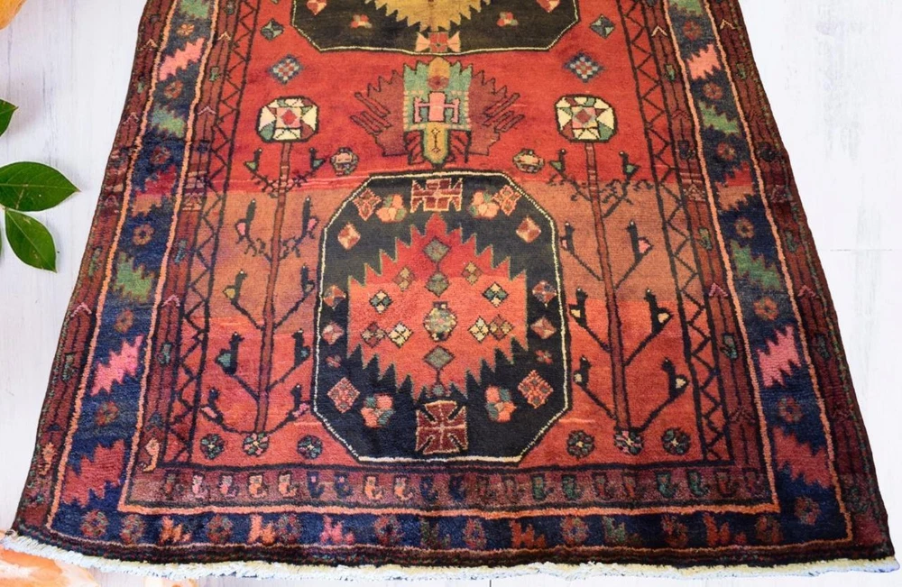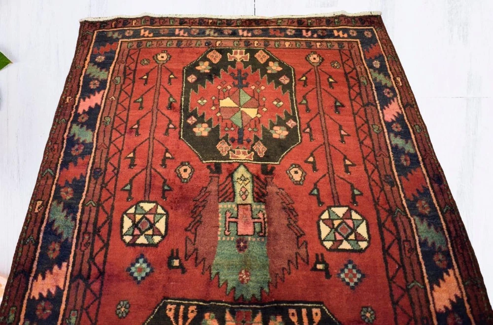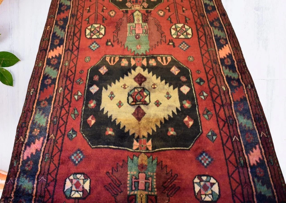 Type: Runner Production Technique: Knotted Pattern: Tribal geometric medallion animal (bird) Country/Region of Manufacture: Armenia Material: Wool Regional Design: Caucasian Persian Turkish Bundle Description: n/a Background Color: See photos Culture: Caucasian Size: 4x9ft. Room: Any Room, Basement, Bathroom, Bedroom, Dining Room, Foyer, Guestroom, Hallway, Home Office/Study, Kitchen, Living Room, Lounge, Nursery, Patio, Porch, Terrace, Trailer Weave: Handmade Hand Knotted Features: Eco Friendly, Hand-Knotted, Kid Friendly, Noise-Reducing, Non-Slip, Pet Friendly, Self-Laying Time Period Manufactured: 1960-1969 Item Length: 9ft. Department: Adult, Boys, Girls, Teens, Unisex Baby & Toddler, Unisex Kids, Adults, Baby, Kids, Teenagers Color: Multicolored Handmade: Yes Custom Bundle: No Pile Type: Normal Item Thickness: Medium Pile Height: Medium Item Width: 4ft. Style: Geometric Tribal Oriental Traditional Suitable For: Medallion, geometric, tribal, rustic, Victorian, boho, modern, industrial, vintage, cottage, country, house, French country, antique, traditional, Hollywood regency, retro, shabby chic, eclectic, transitional Theme: cottagecore, modern maximalist design, nostalgic interior, biophilic design, natural, functioning floor art, sustainable décor Care Instructions: Do Not Dry Clean Avoid harsh chemicals Brand: Antiquerugbazaar Shape: Rectangle Rug Type: Area Rug Original/Licensed Reproduction: Original Era: Mid 20th Century (1941-1969)