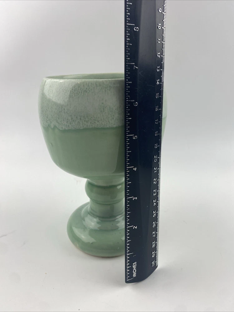 Material:CeramicOrigin:CaliforniaStyle:Mid-Century ModernUPC:Does not applyType:VaseBrand:California PotteryModel:Chalice Pot MCMgtin13:Does not applyProduction Style:Art PotteryItem Weight:1 lb 10 ozProduction Technique:Studio CraftedItem Height:7”Pattern:Drip GlazeVintage:YesCountry/Region of Manufacture:United StatesAntique:NoItem Width:5”Backstamp:IncisedColor:Drip Glaze Green