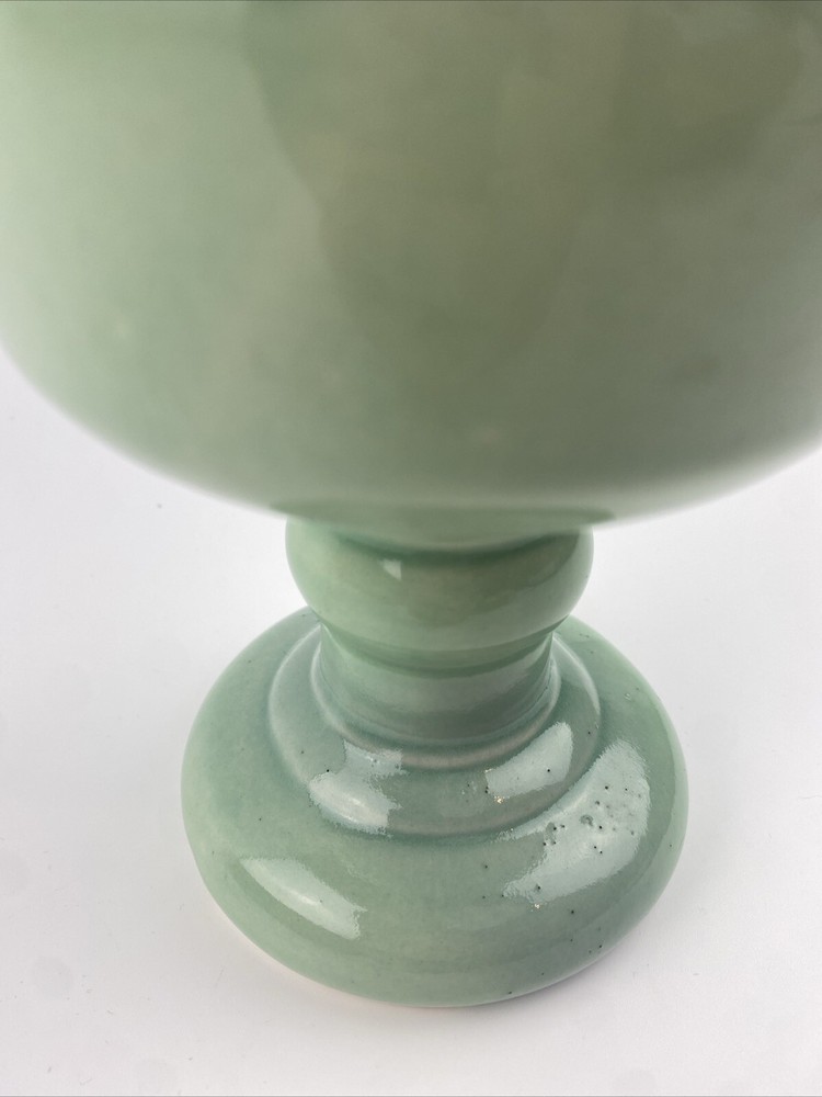 HomeVintage Celadon Green Drip Glaze Pedestal Vase Planter USA Art Pottery