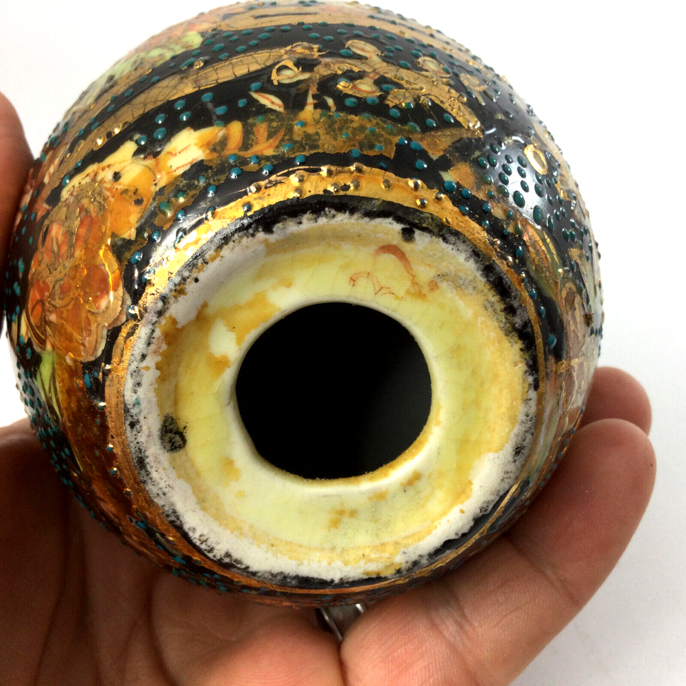 Vintage Ceramic Egg with Gold Cloisonne Roses Floral Design