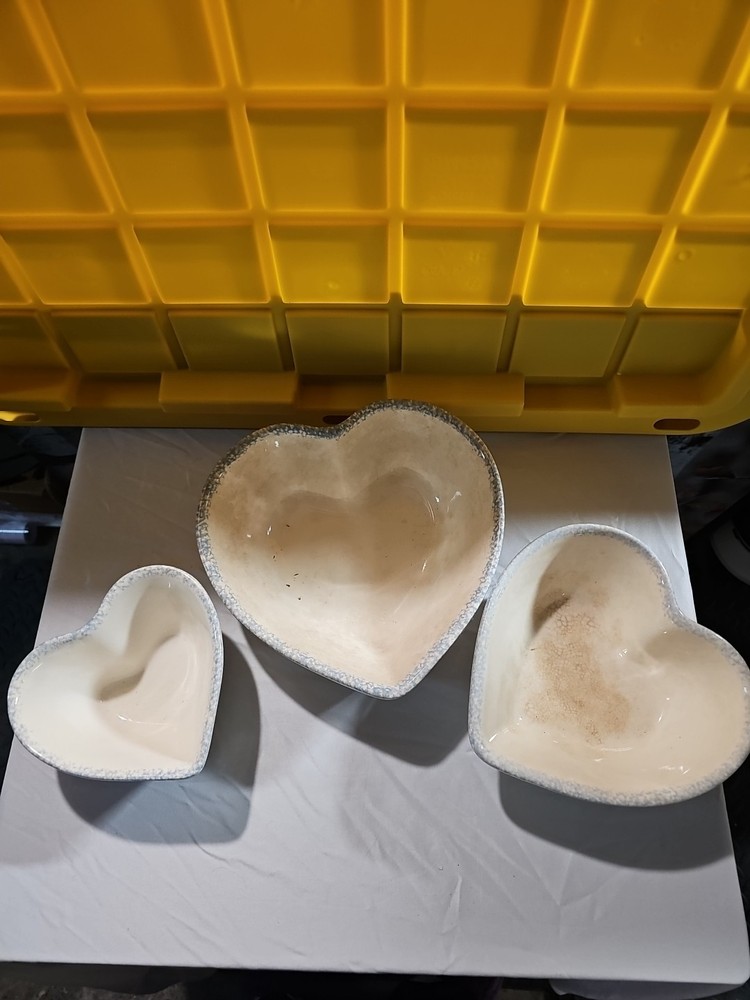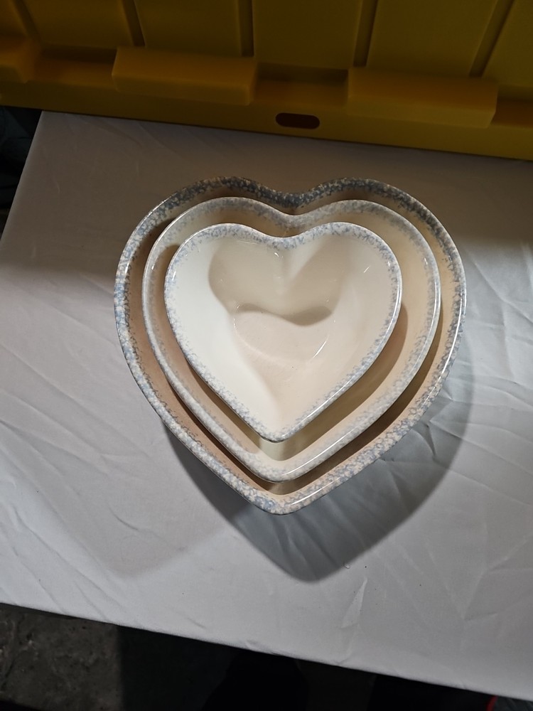 Vintage Ceramic Nesting Heart Bowls Set of 3 White with Blue Hearts
